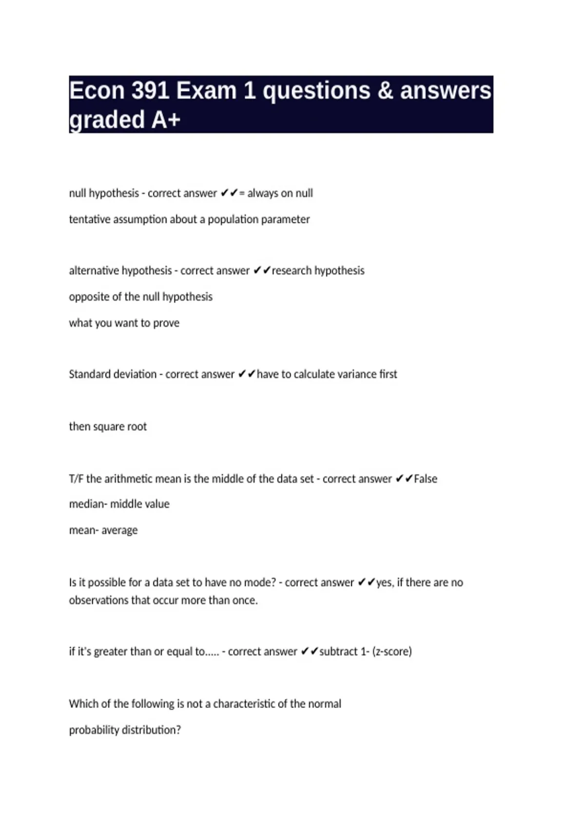 Econ 391 Exam 1 questions & answers graded A+
