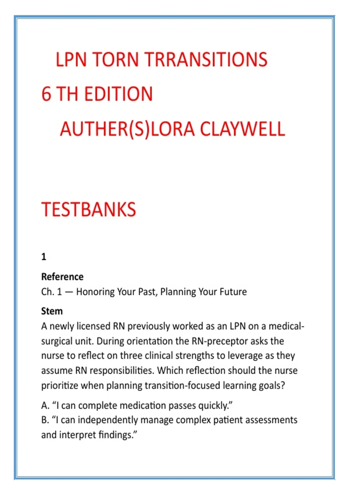 Claywell, L. (2025). LPN to RN Transitions (6th ed.). Ch. 1.