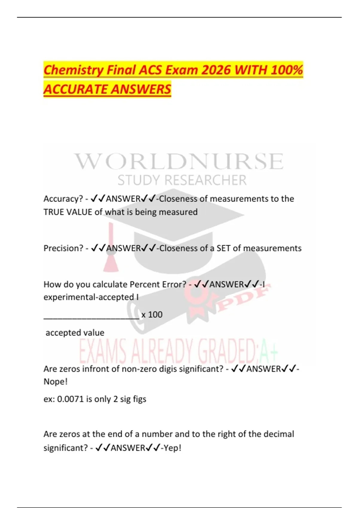 Accuracy? - ✔✔ANSWER✔✔-Closeness of measurements to the