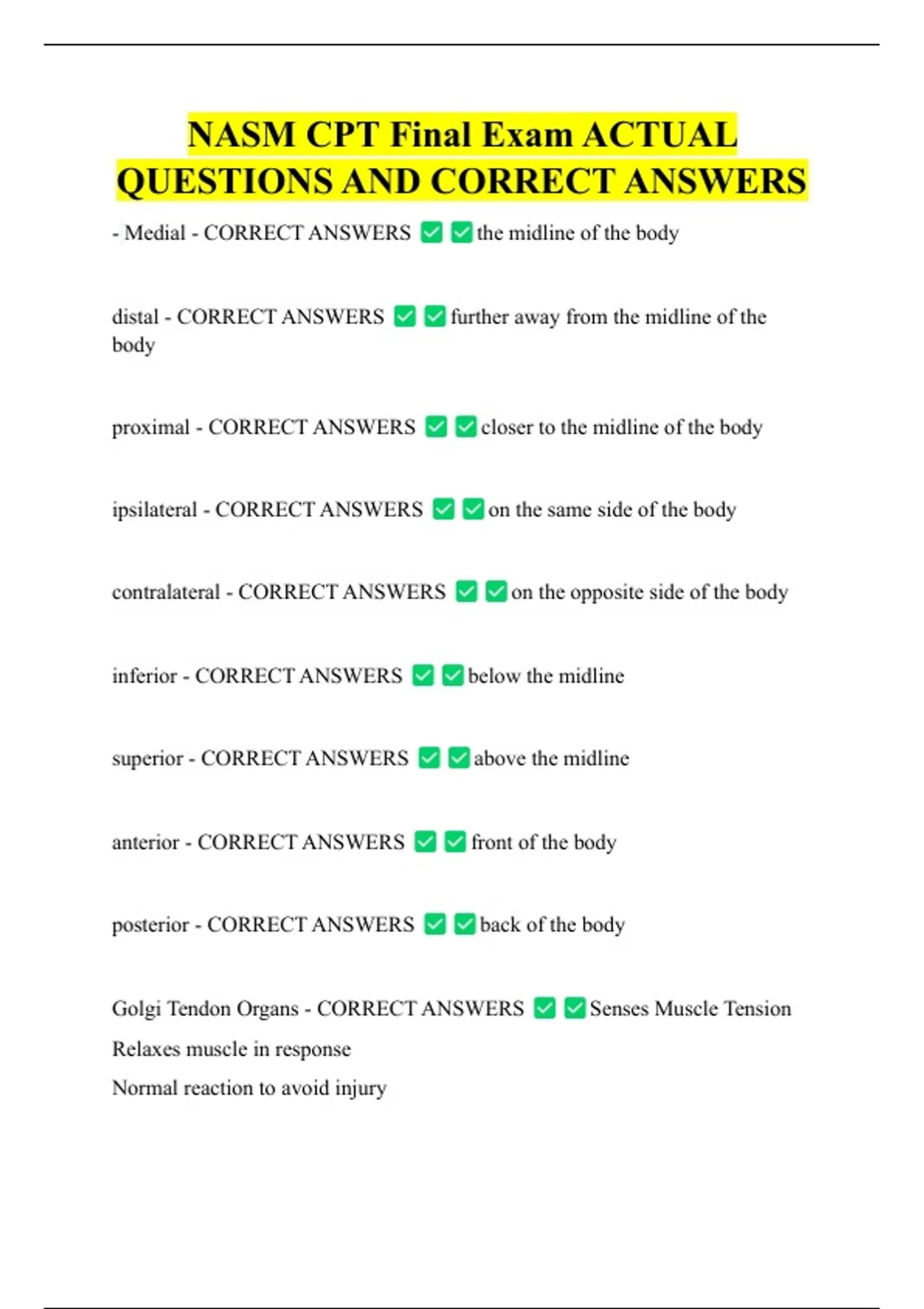 Nasm CPT Final Exam Study Guide UPDATED Study Guide QUESTIONS AND CORRECT ANSWERS