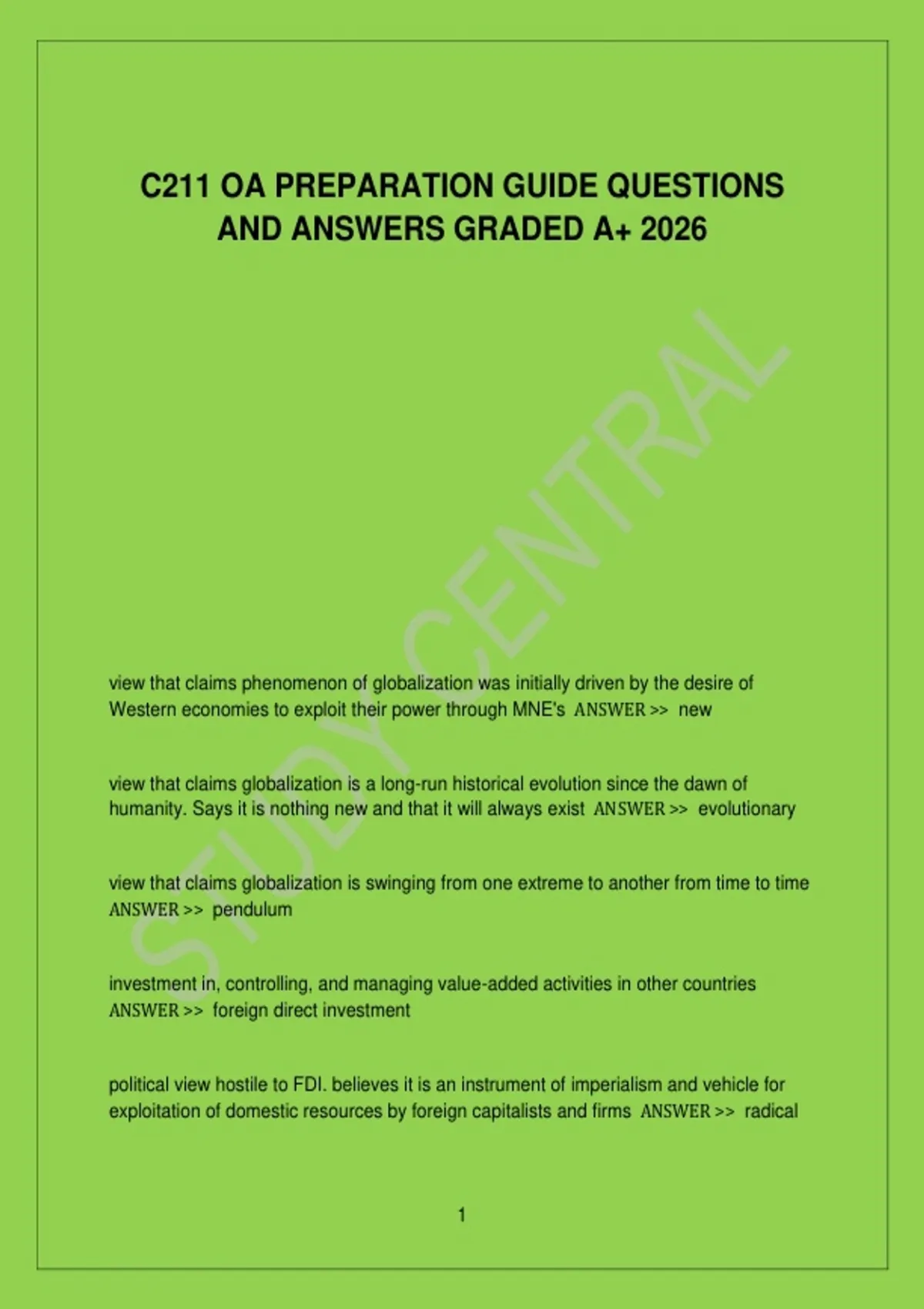 C211 OA Preparation Guide – Course C211, Academic Year 2026, complete practice questions with answers