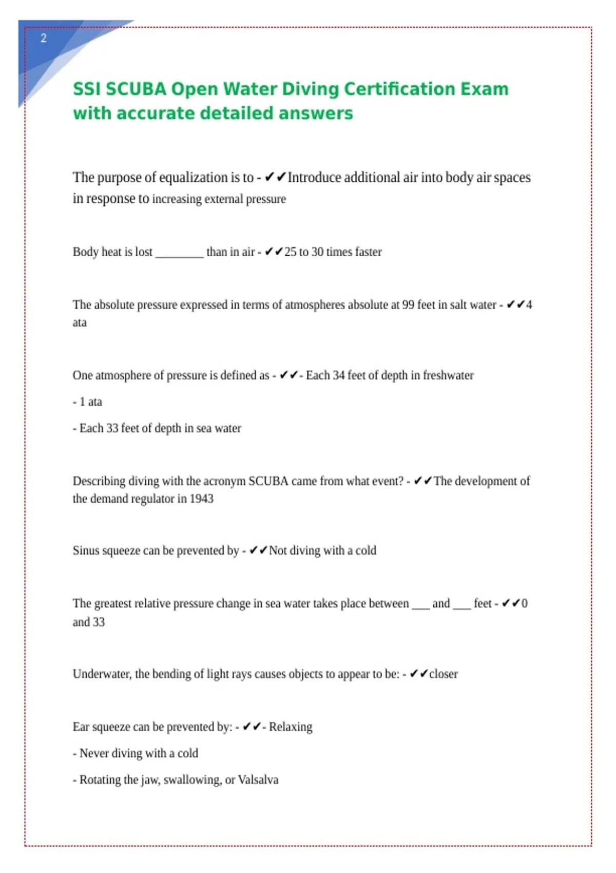 SSI SCUBA Open Water Diving Certification Exam with accurate detailed answers