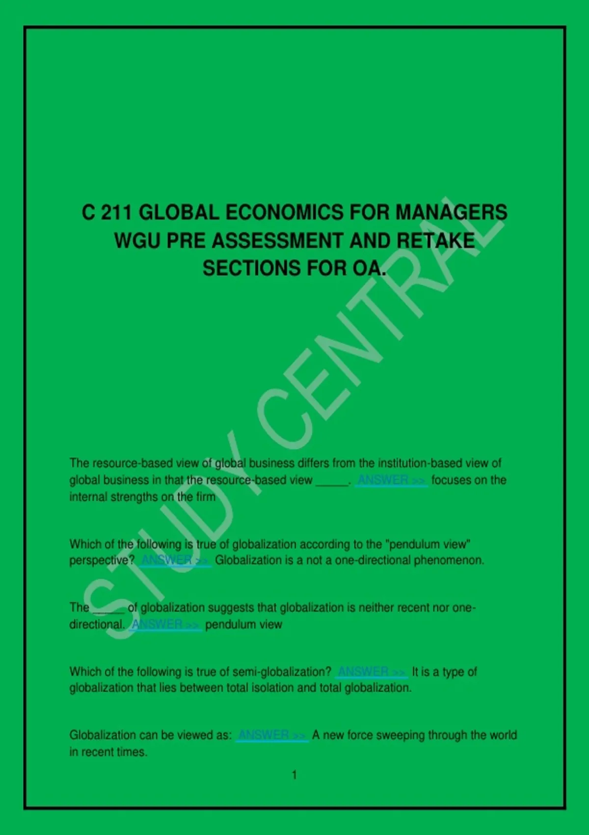 C211 Global Economics for Managers – Course C211, Western Governors University, Academic Year 2026, pre-assessment and OA retake preparation material