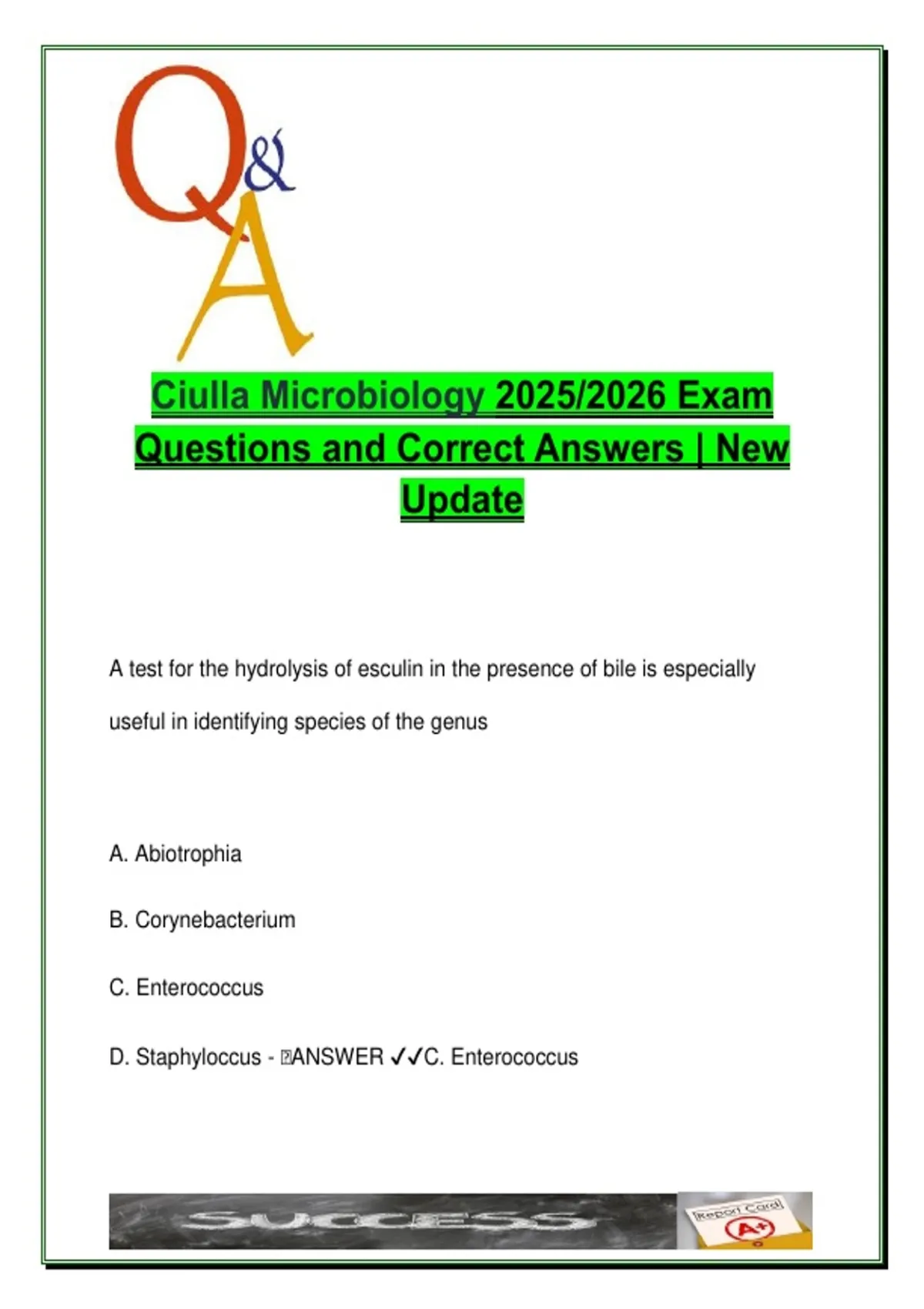 D. Staphyloccus - 🧠ANSWER ✔✔C. Enterococcus