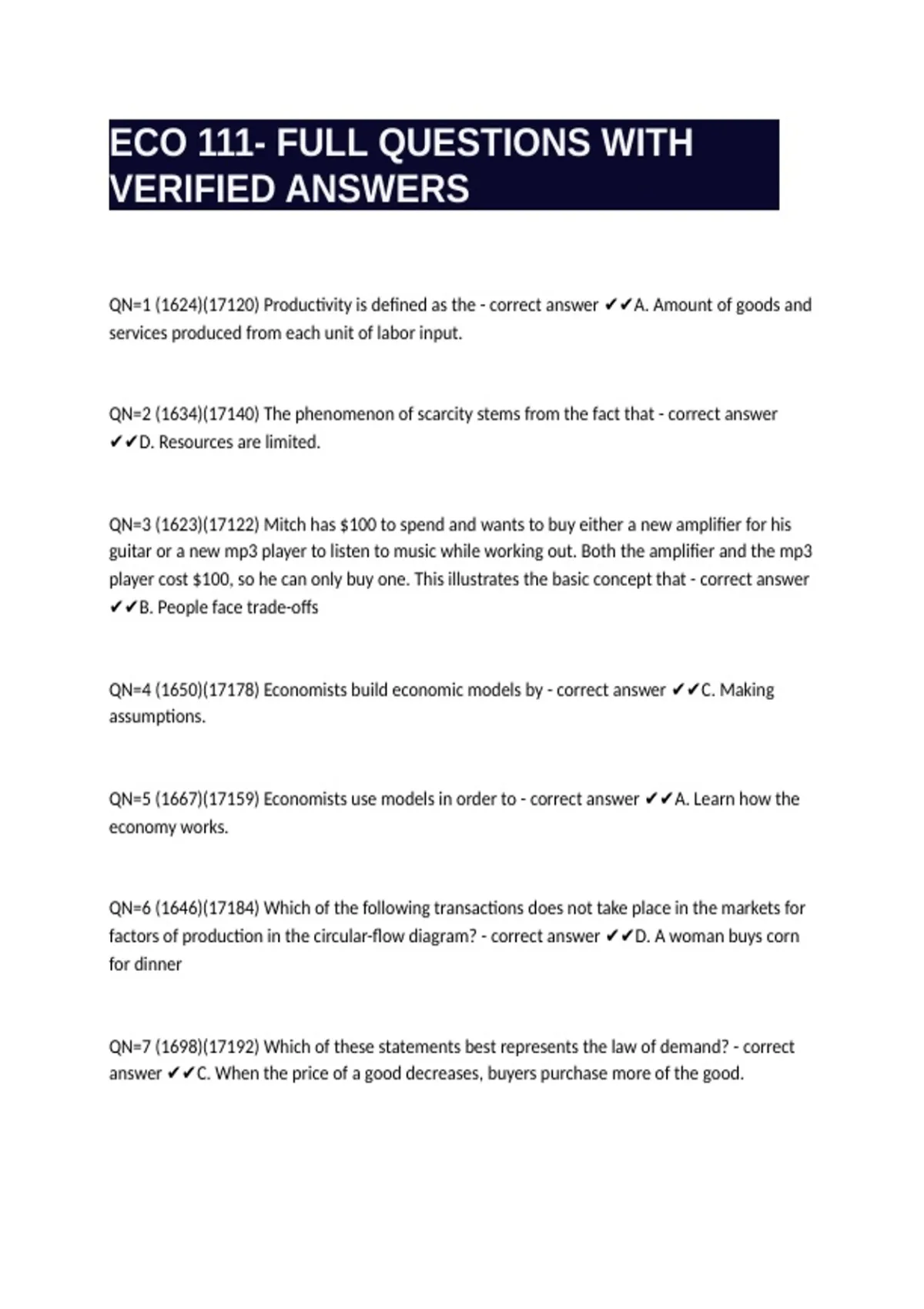 ECO 111- FULL QUESTIONS WITH VERIFIED ANSWERS