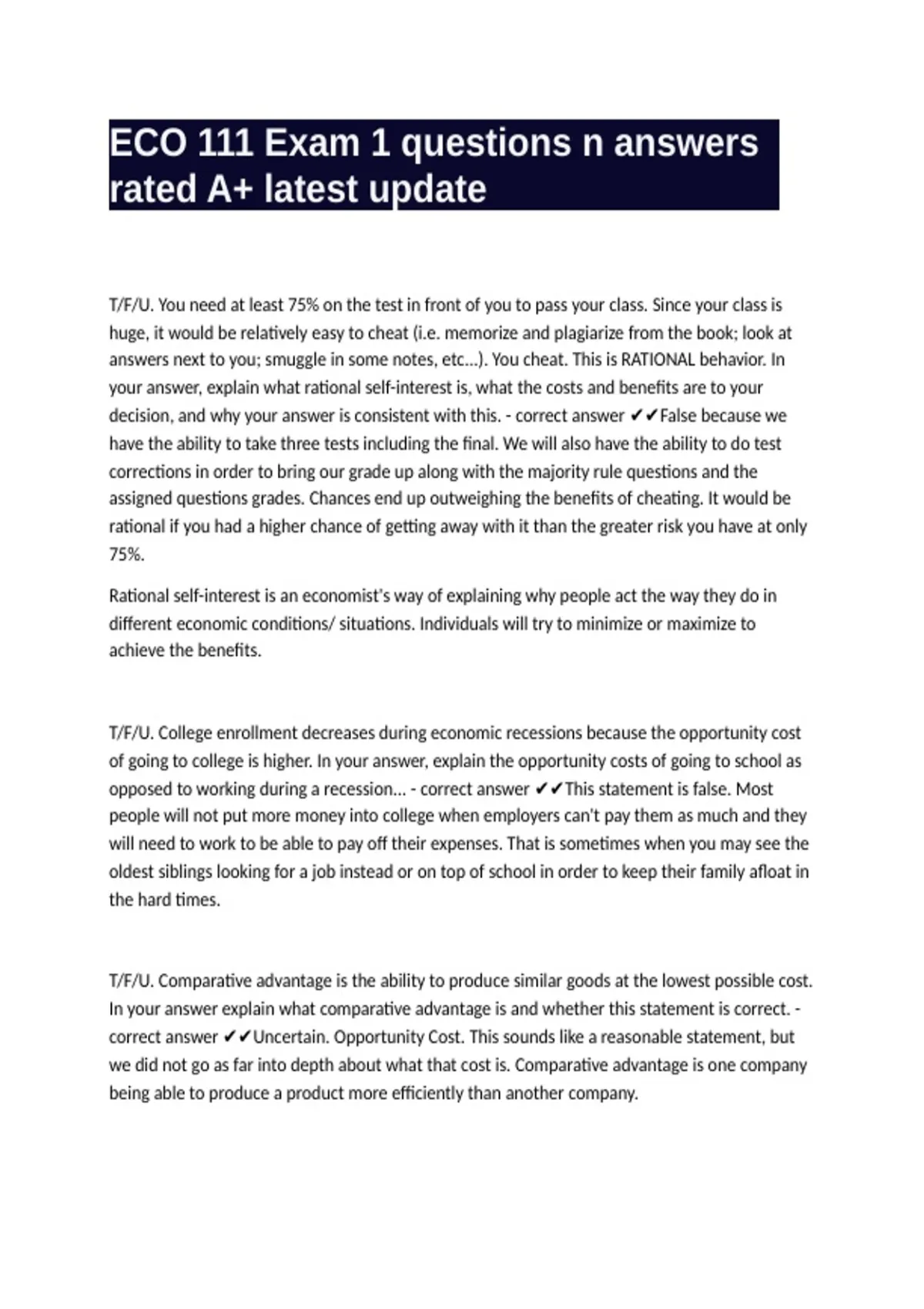 correct answer ✔✔Uncertain. Opportunity Cost. This sounds like a reasonable statement, but