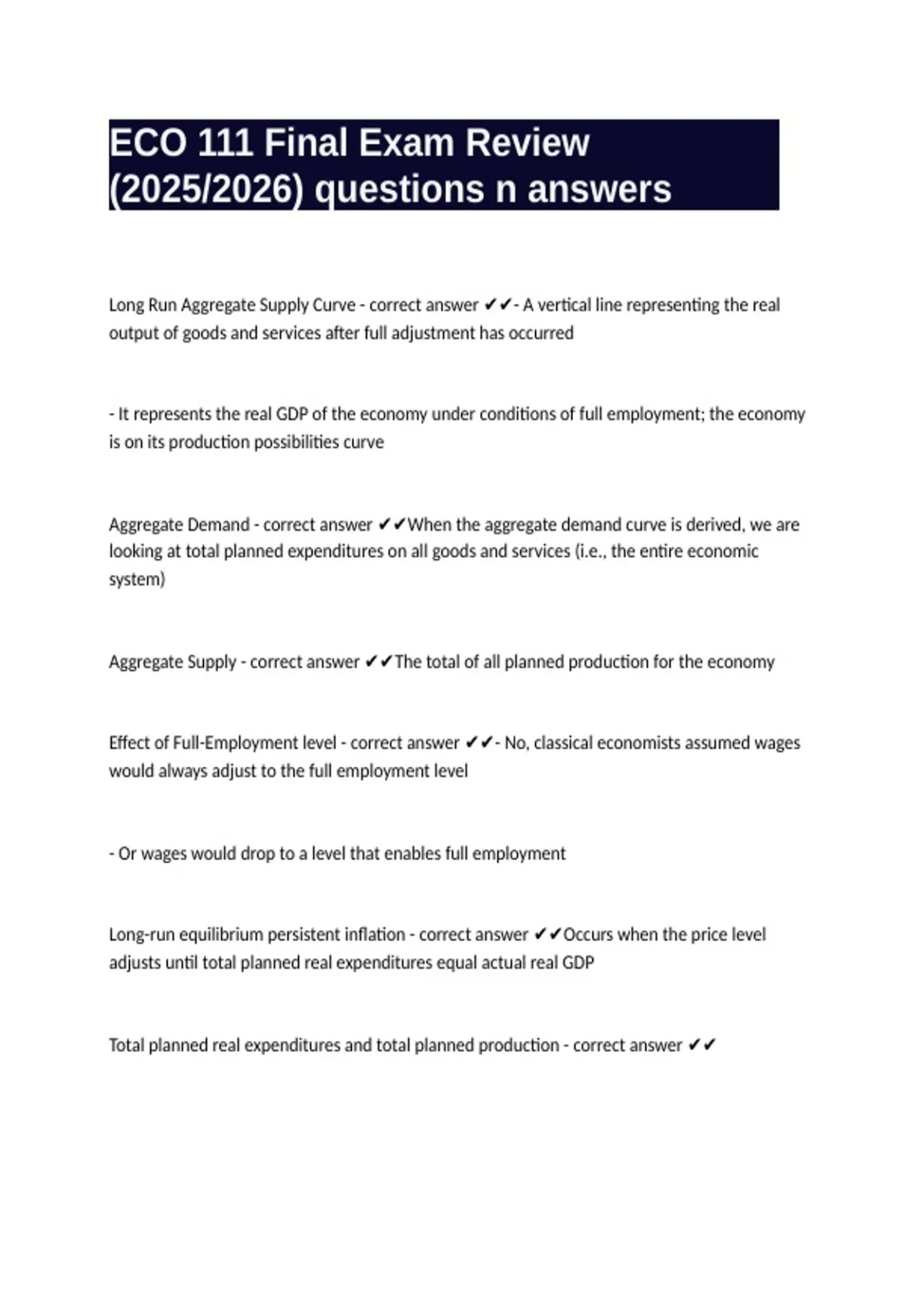 Aggregate Supply - correct answer ✔✔The total of all planned production for the economy