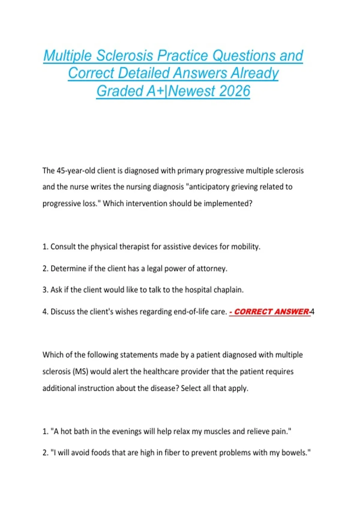 4. Discuss the client's wishes regarding end-of-life care. - CORRECT ANSWER-4