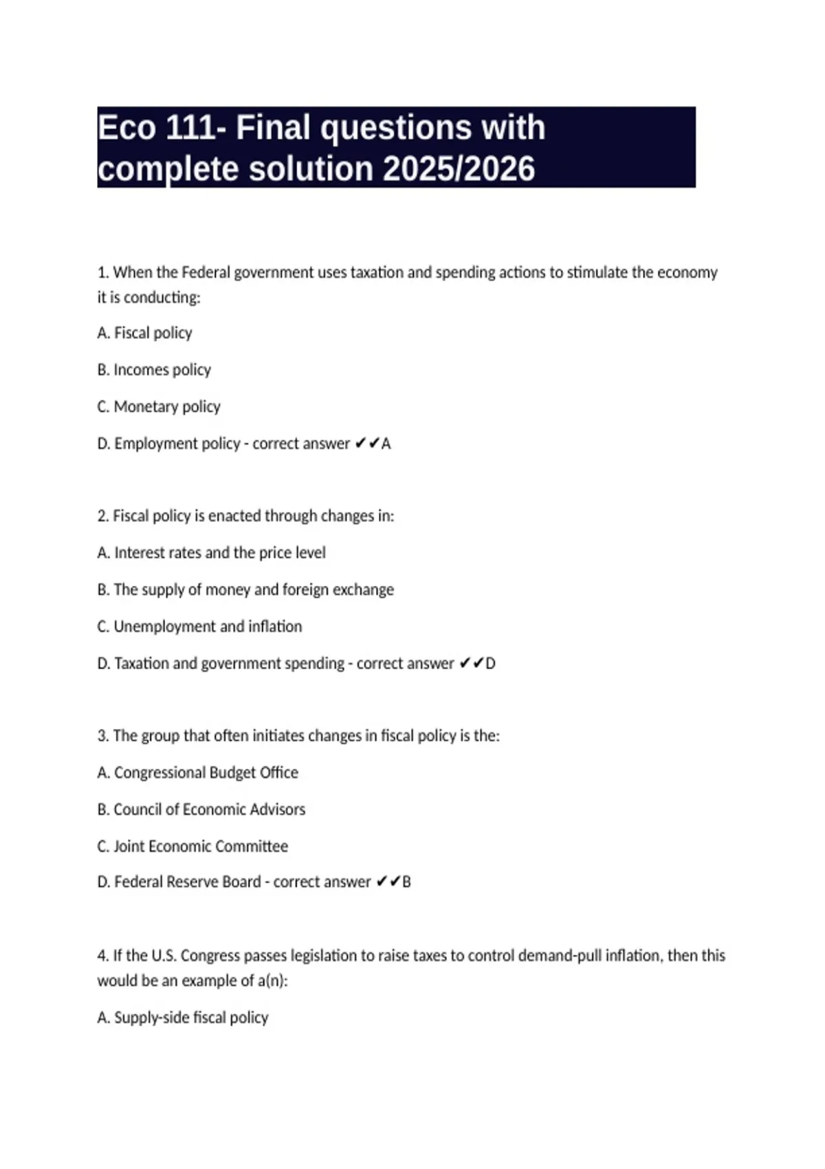 D. Employment policy - correct answer ✔✔A