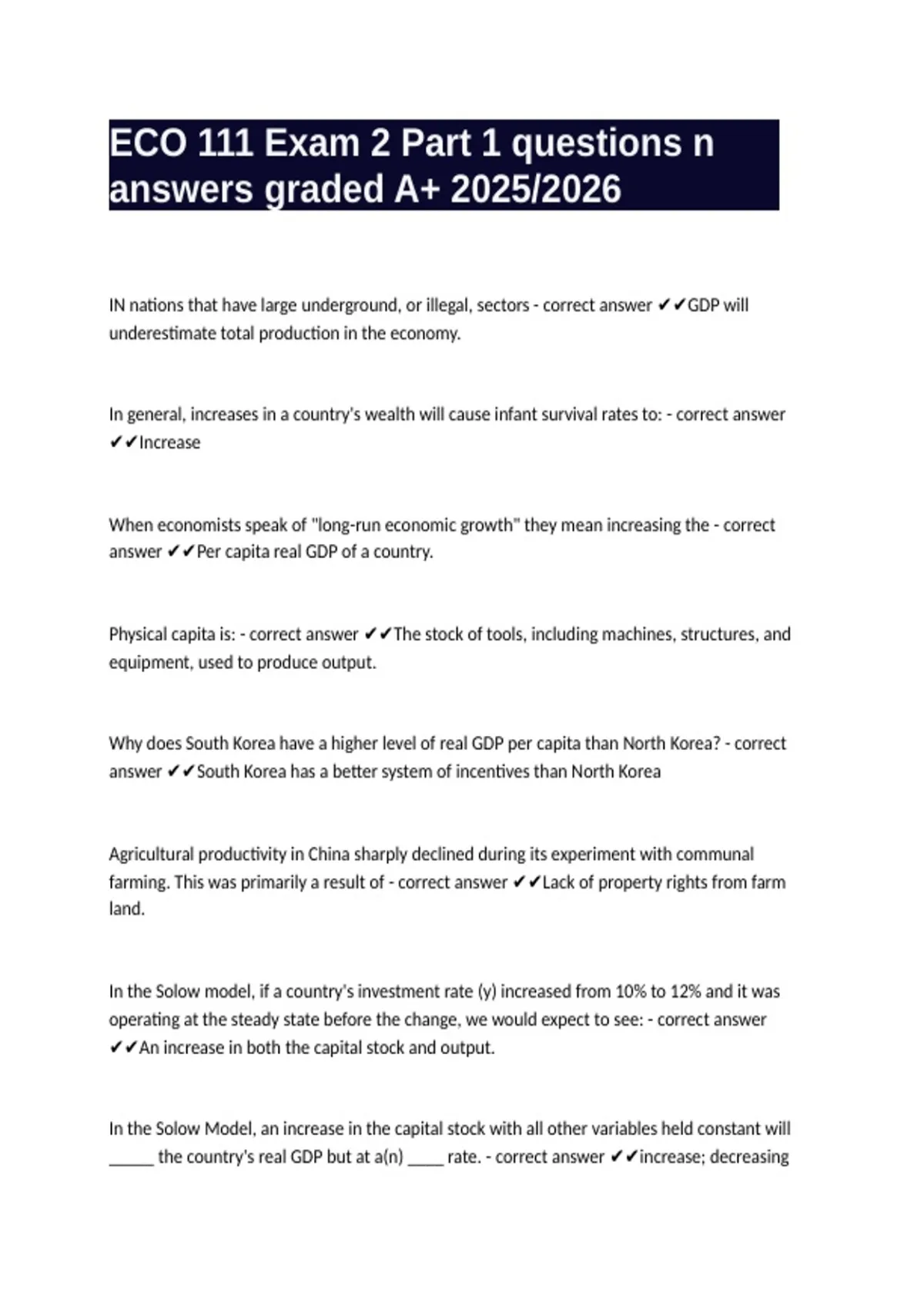 Why does South Korea have a higher level of real GDP per capita than North Korea? - correct