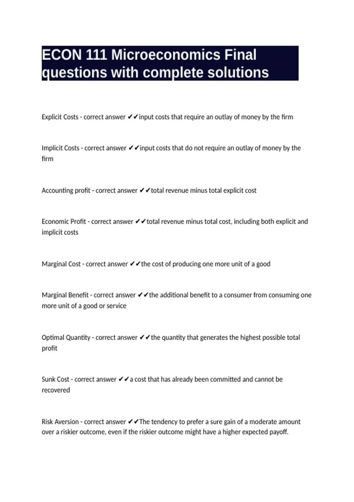 Marginal Cost - correct answer ✔✔the cost of producing one more unit of a good