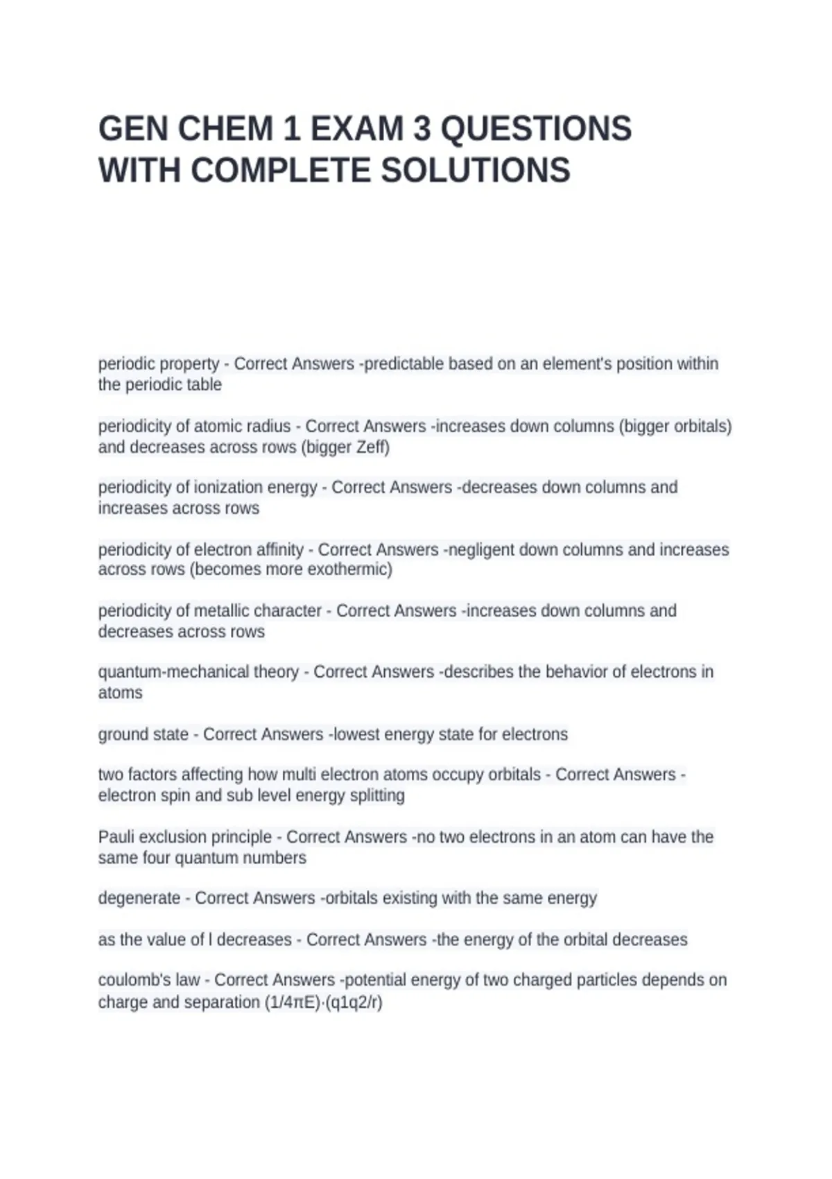 GEN CHEM 1 EXAM 3 QUESTIONS