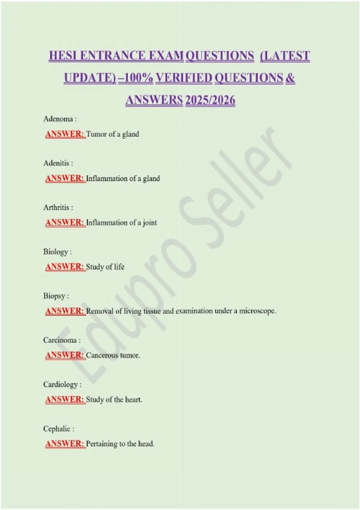 HESI ENTRANCE EXAM QUESTION (LATEST UPDATE) –100% VERIFIED QUESTIONS & ANSWERS 2025/2026