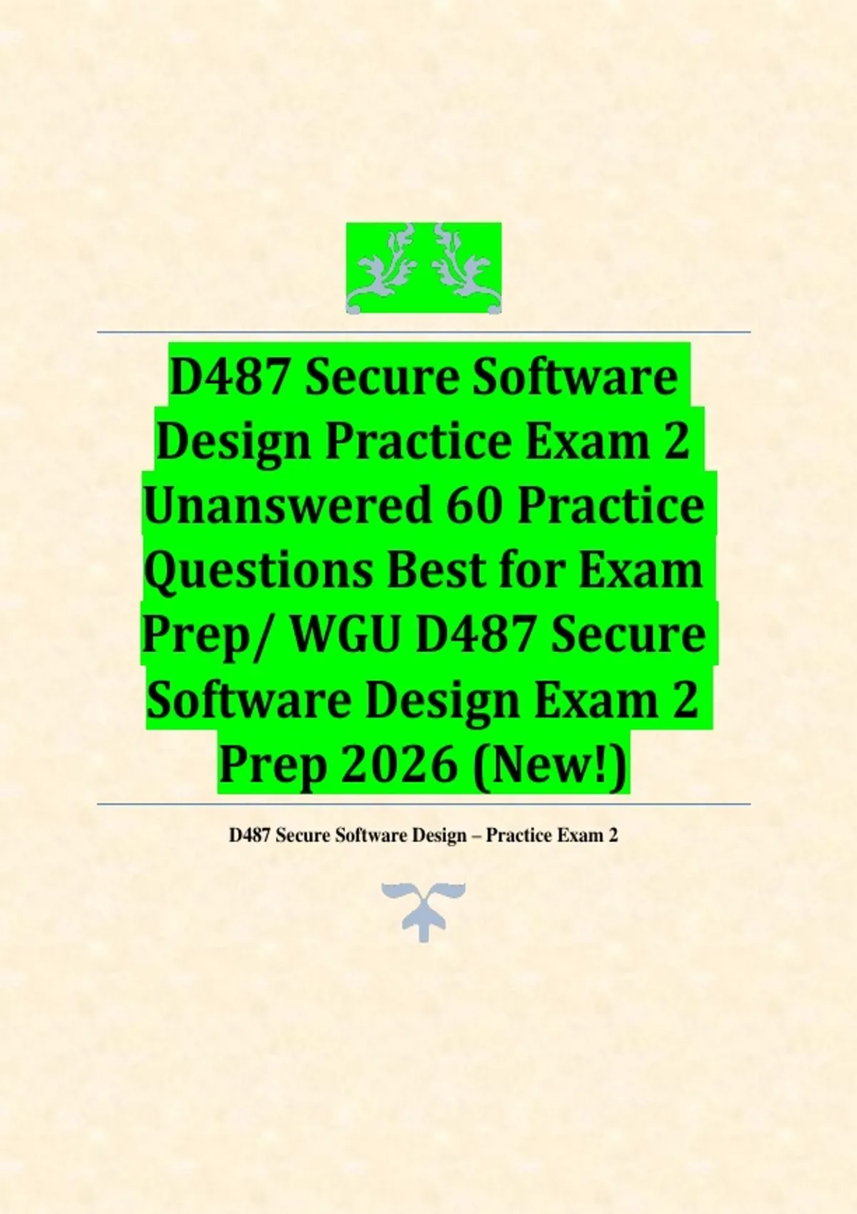 D487 Secure Software Design Practice Exam 2 Unanswered 60 Practice Questions Best for Exam Prep/ WGU D487 Secure Software Design Exam 2 Prep 2026 (New!)