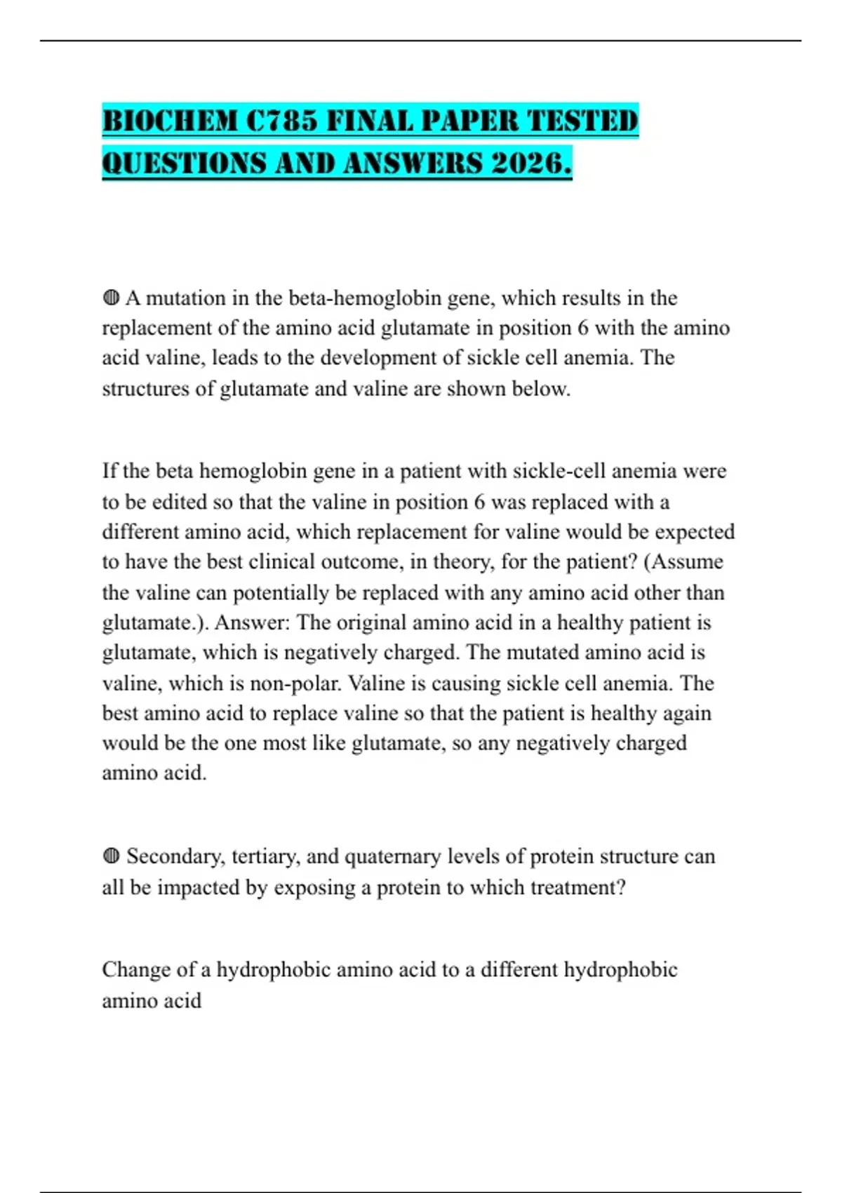 BIOCHEM C785 FINAL PAPER TESTED QUESTIONS AND ANSWERS 2026.