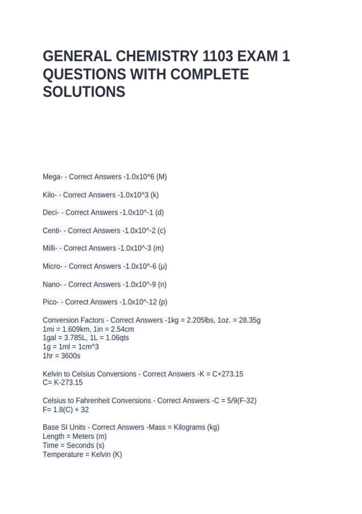 GENERAL CHEMISTRY 1103 EXAM 1 QUESTIONS WITH COMPLETE SOLUTIONS
