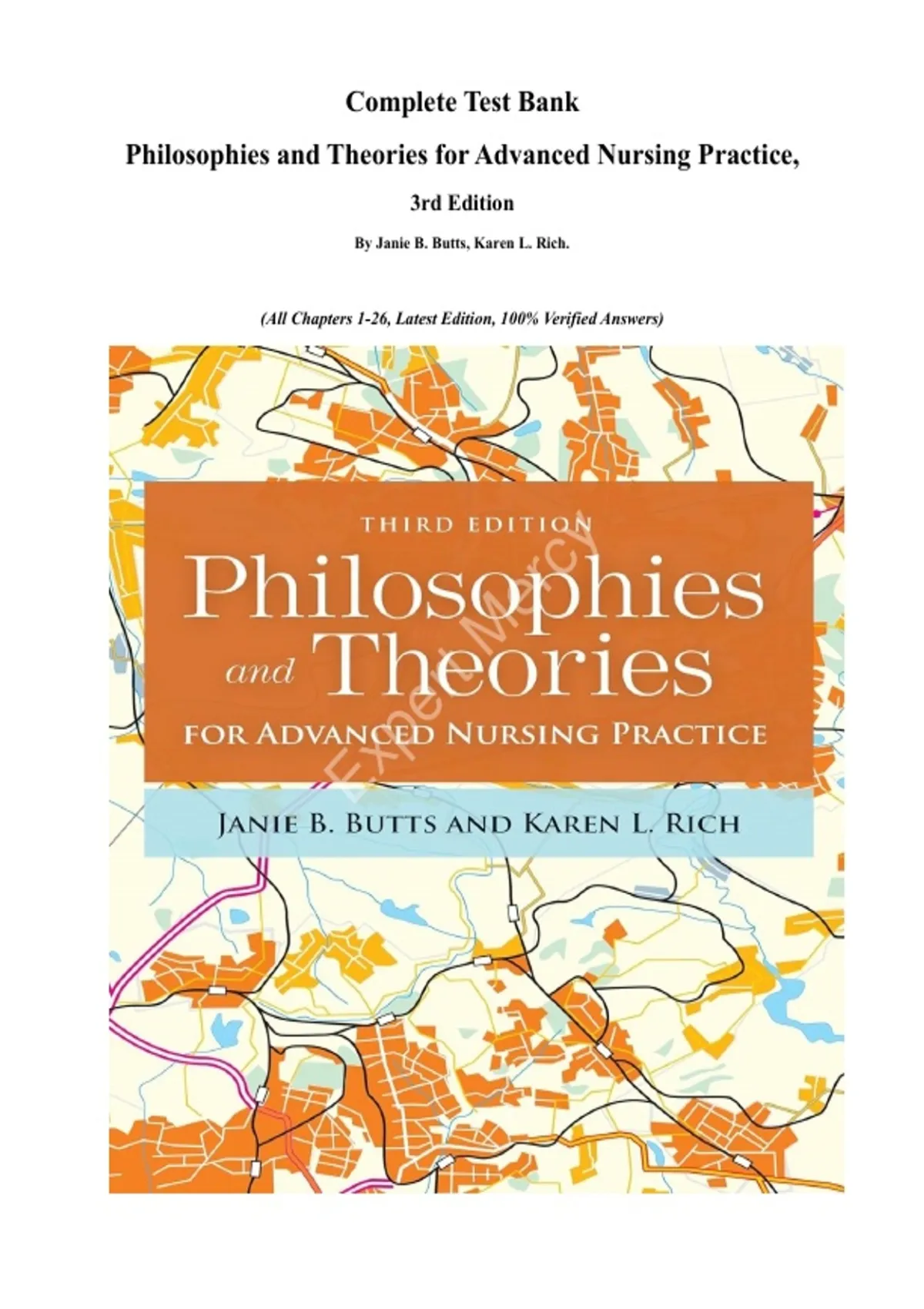 Complete Test Bank Philosophies and Theories for Advanced Nursing Practice, 3rd Edition. By Janie B. Butts, Karen L. Rich. (All Chapters 1-26, Latest Edition, 100% Verified Answers) Philosophies and Theories for Advanced Nursing Practice, Third Edition is a key resource for advanced practice nursing students in master’s and doctoral programs. It supports learners who are new to philosophy and theory development as well as nurses with an advanced understanding of theoretical frameworks. The Third Edition includes expanded coverage of the AACN DNP Essentials, making it especially valuable for DNP students and for PhD students seeking a clearer understanding of the role of the DNP-prepared nurse. The text examines a broad range of theories, extending beyond traditional nursing theories to include non-nursing theoretical perspectives. This interdisciplinary approach reflects the increasing national emphasis on collaborative, team-based patient care and prepares nurses to apply theory across diverse clinical and professional settings.