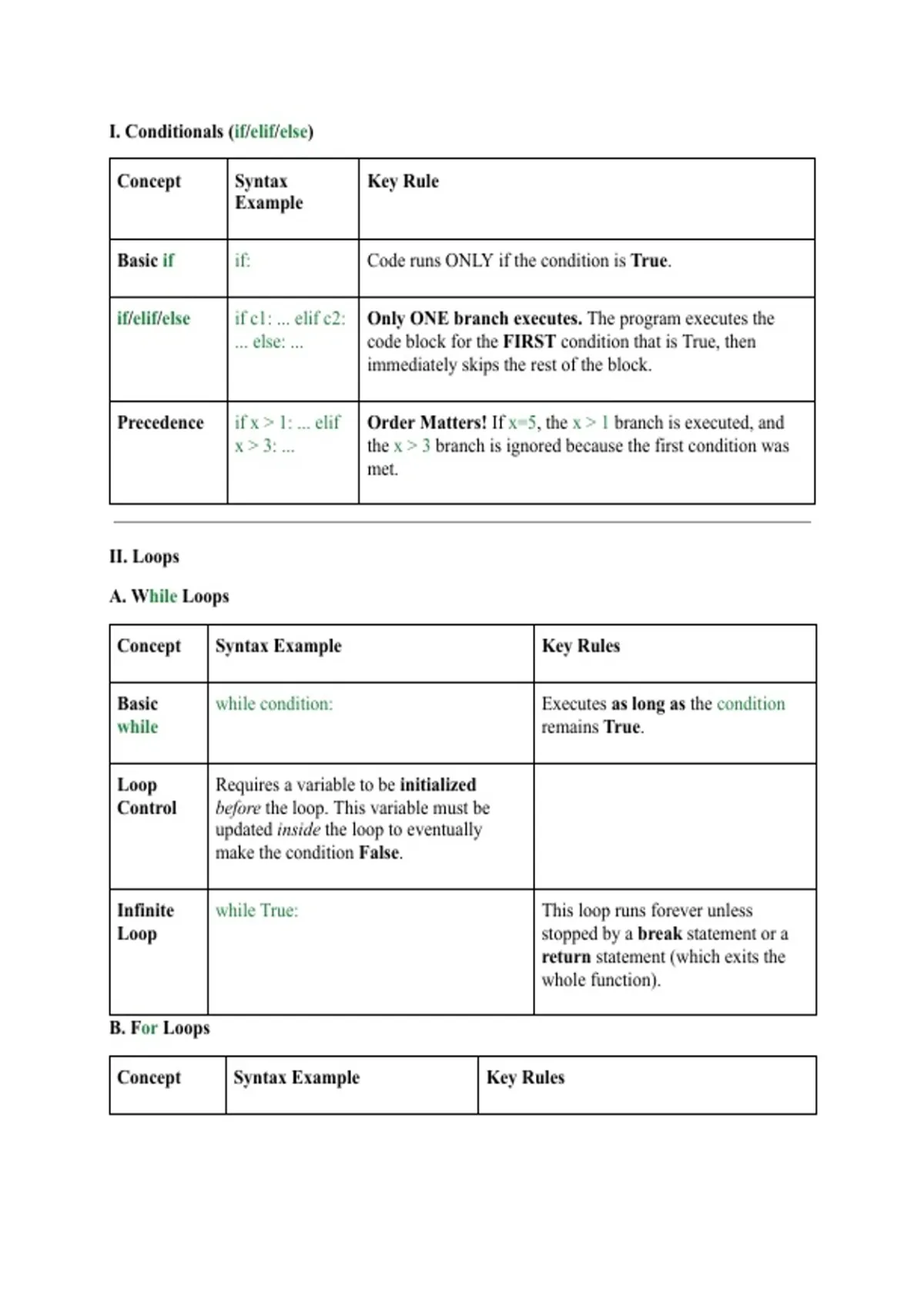 I. Conditionals (if/elif/else)