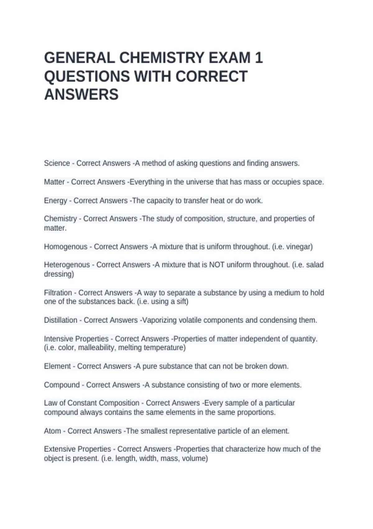 Chemistry - Correct Answers -The study of composition, structure, and properties of