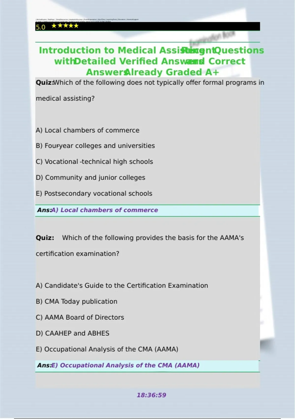 Introduction to Medical Assisting 2026 Actual Exam (Screenshots) With 100% Verified Questions & Correct Answers Graded A+