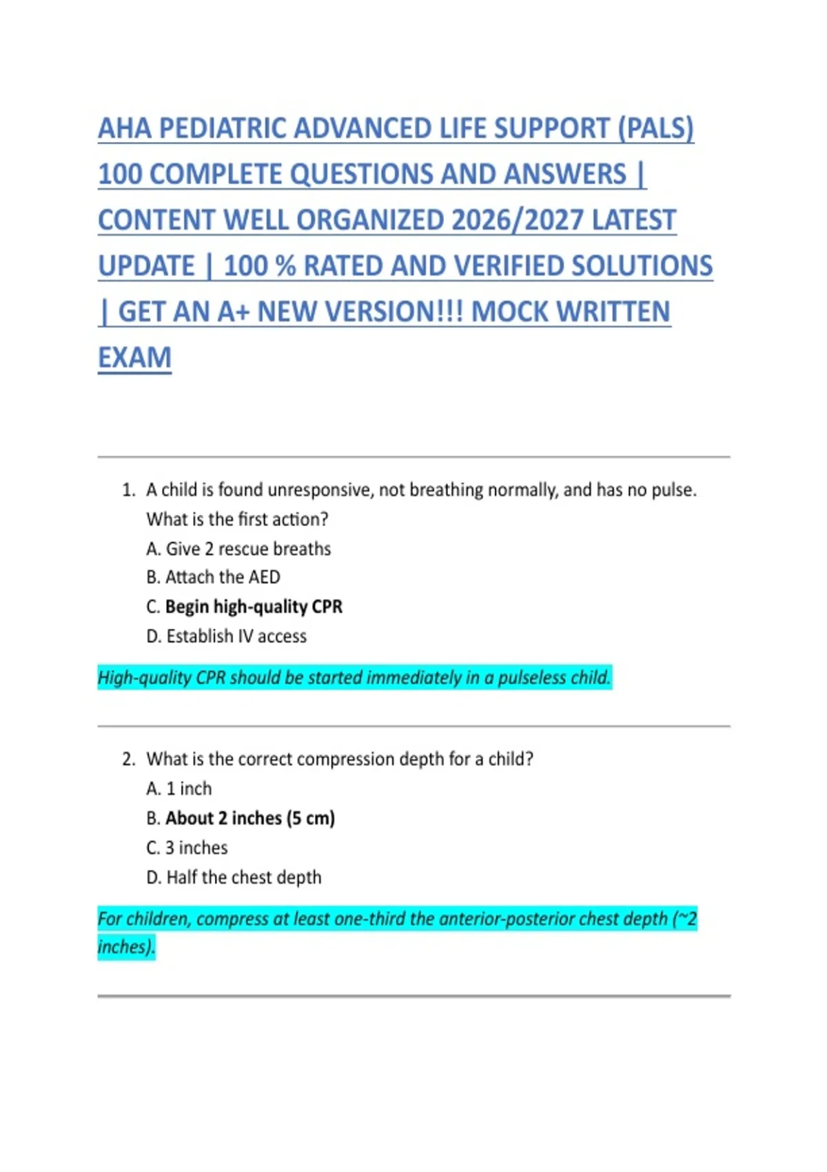 AHA PEDIATRIC ADVANCED LIFE SUPPORT (PALS)