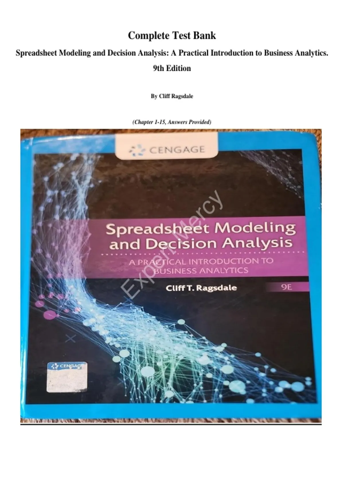Spreadsheet Modeling and Decision Analysis: A Practical Introduction to Business Analytics.