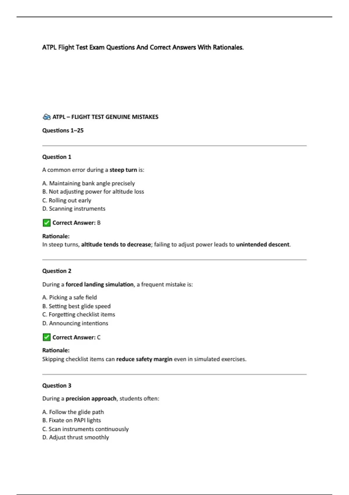 ATPL Flight Test Exam Questions And Correct Answers With Rationales.