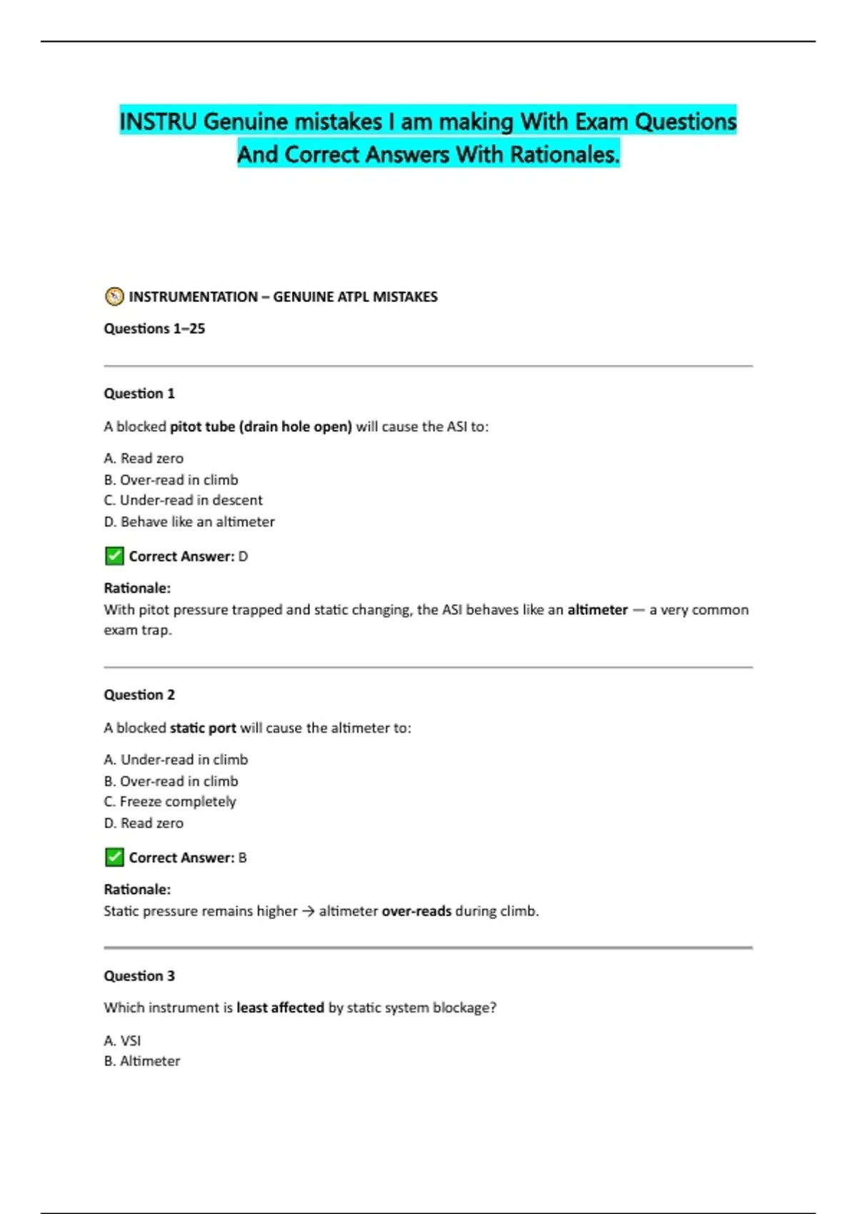 INSTRUMENTATION – GENUINE ATPL MISTAKES