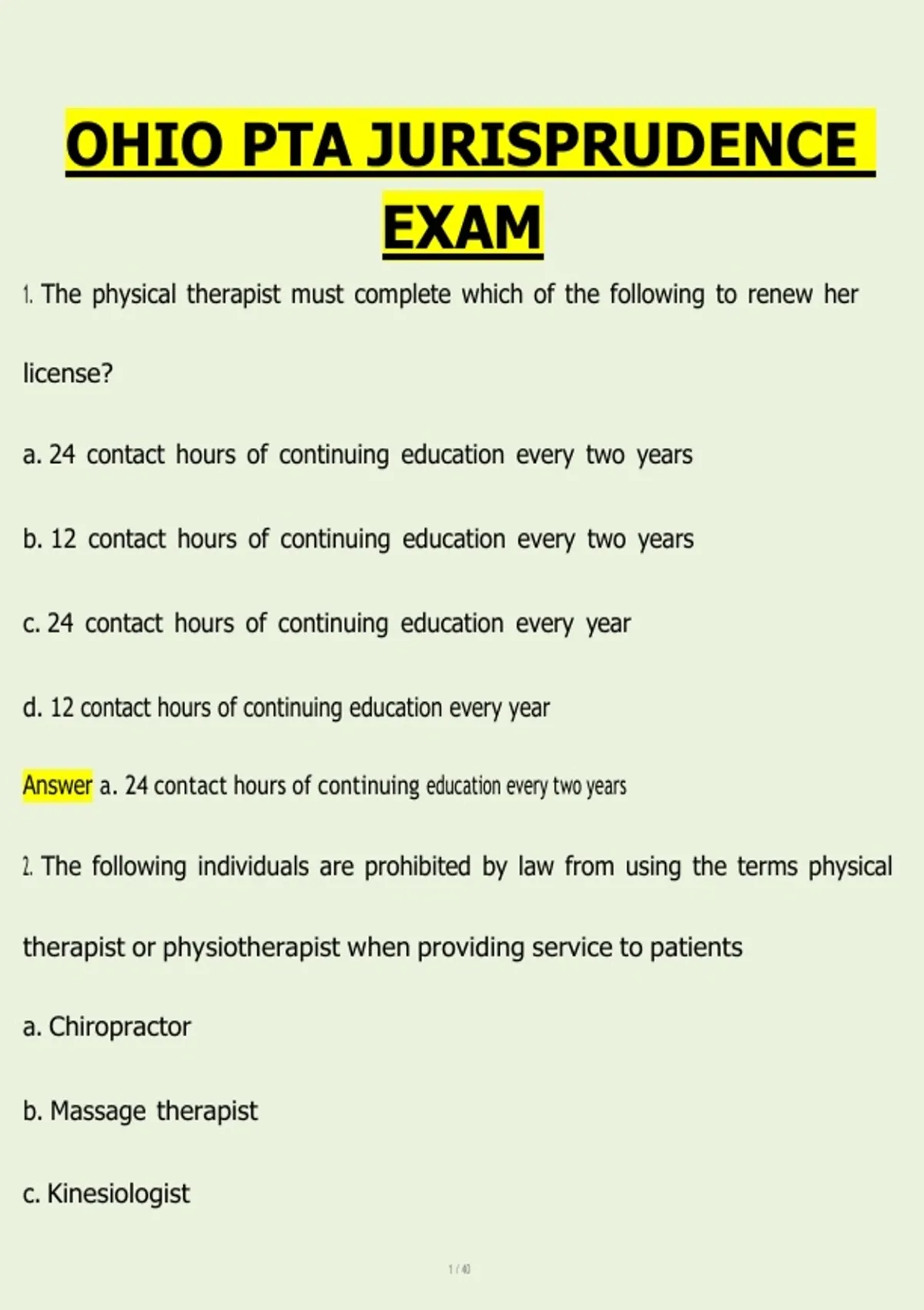 1. The physical therapist must complete which of the following to renew her