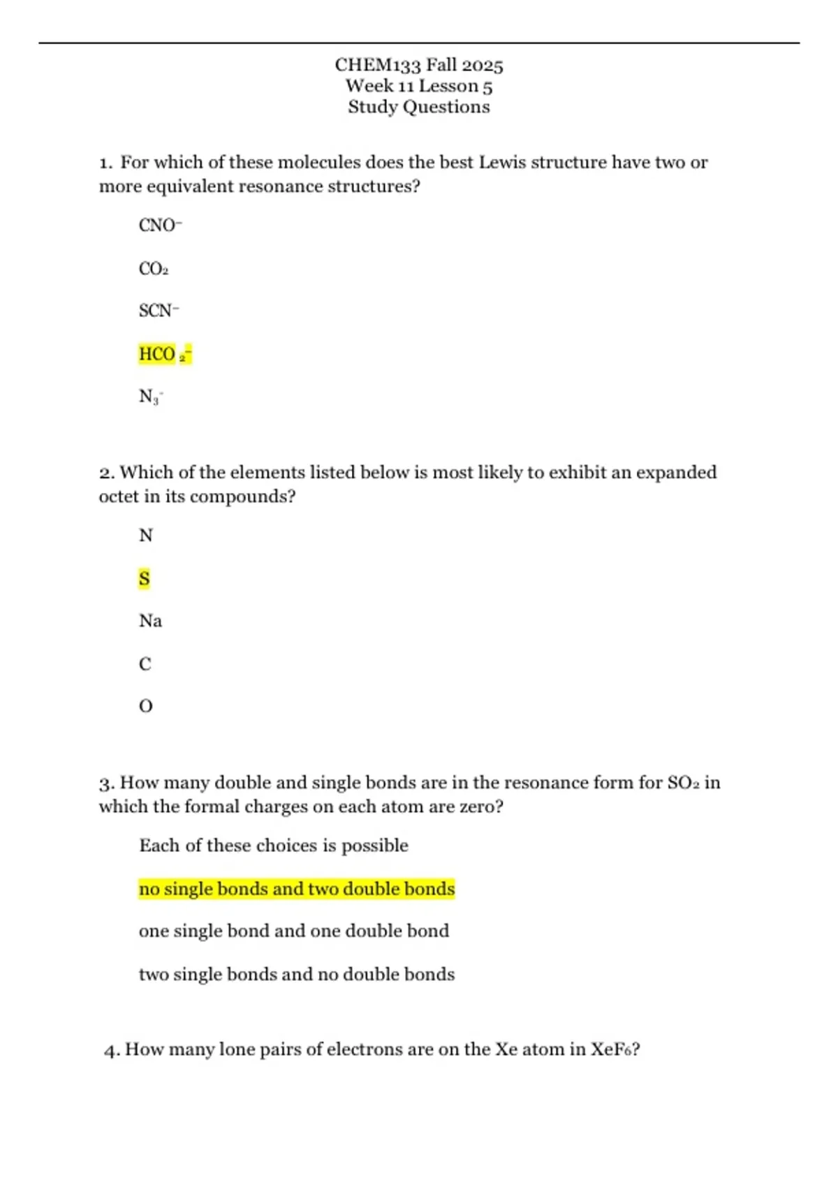 3. How many double and single bonds are in the resonance form for SO 2 in