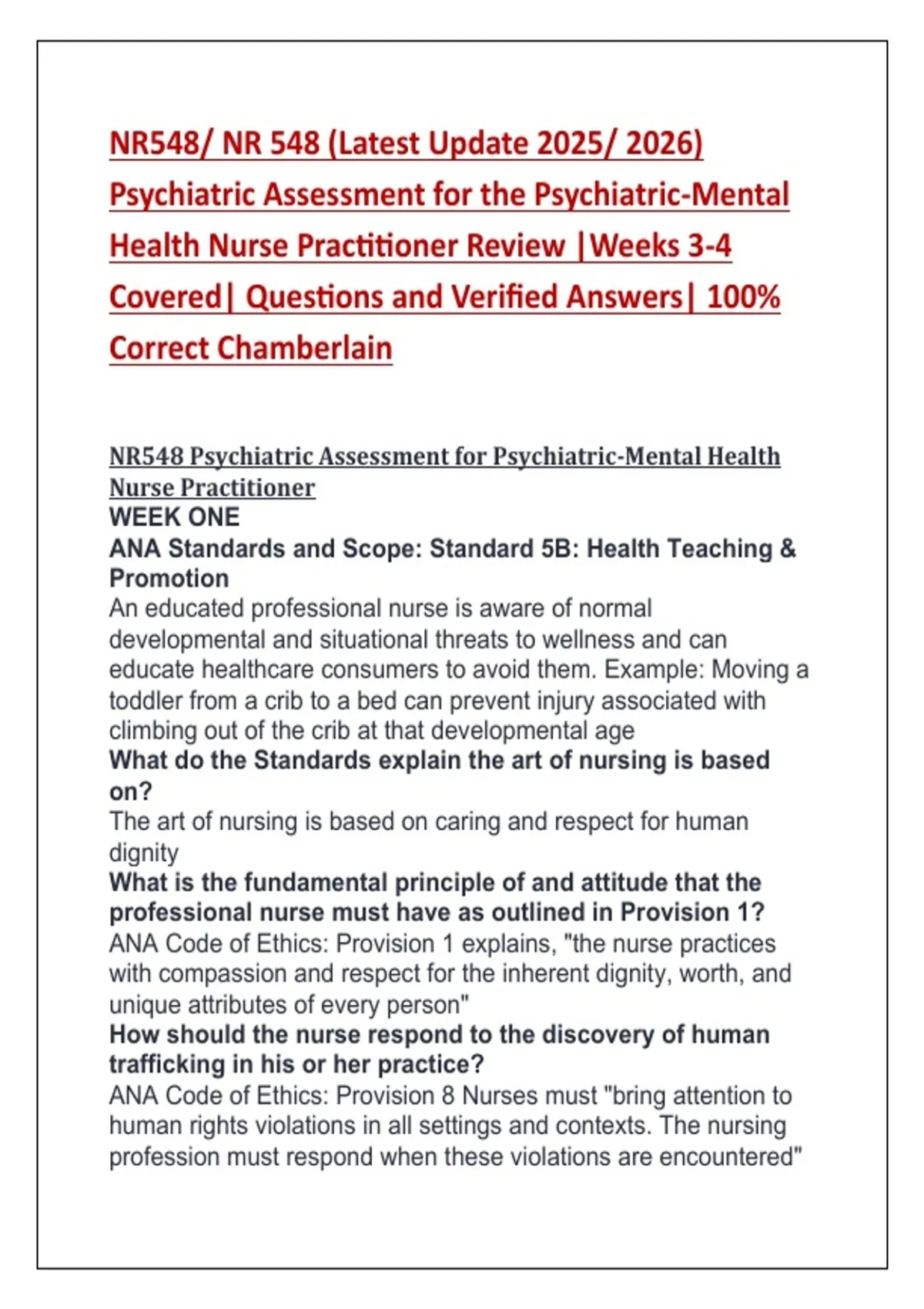 NR548 Psychiatric Assessment for Psychiatric-Mental Health
