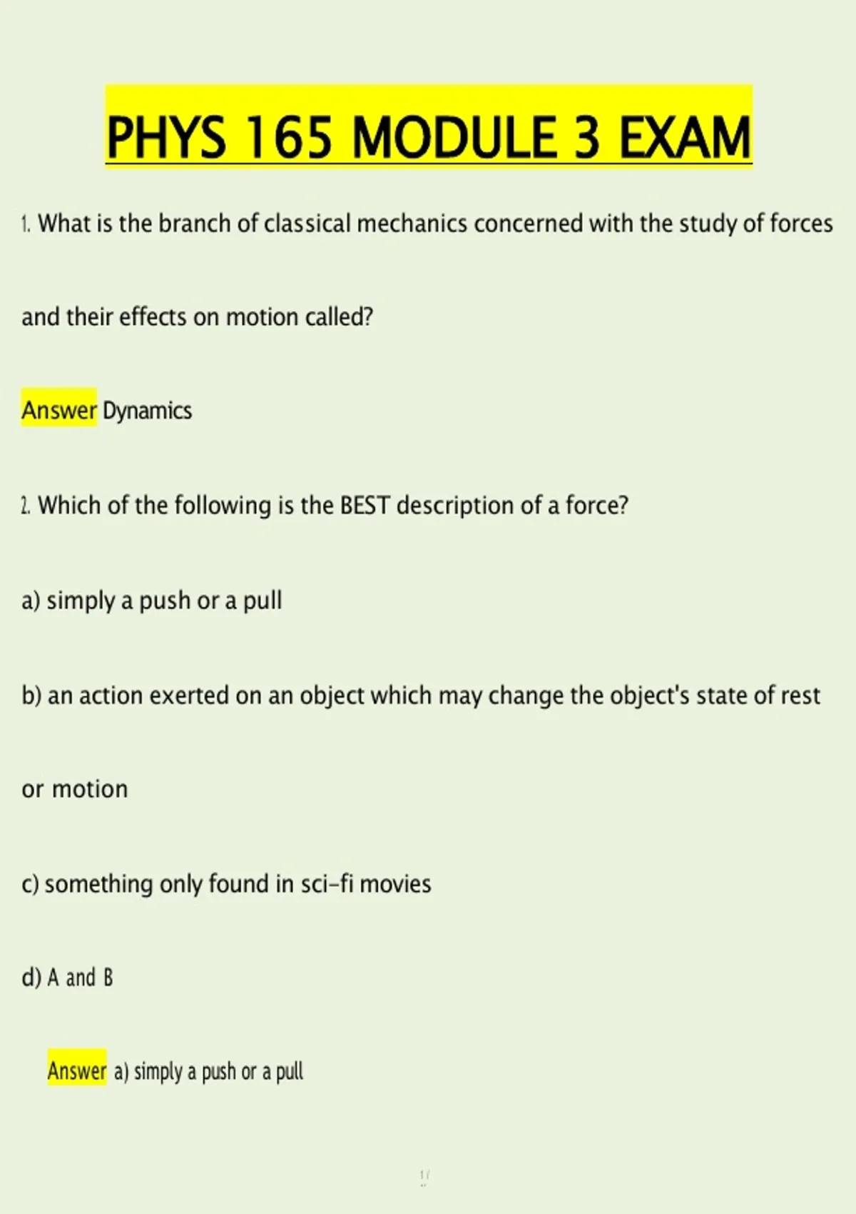 2. Which of the following is the BEST description of a force?