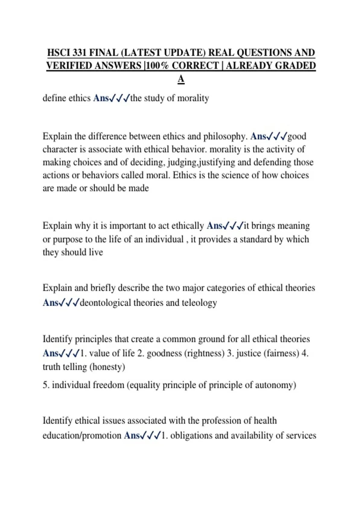 VERIFIED ANSWERS |100% CORRECT | ALREADY GRADED