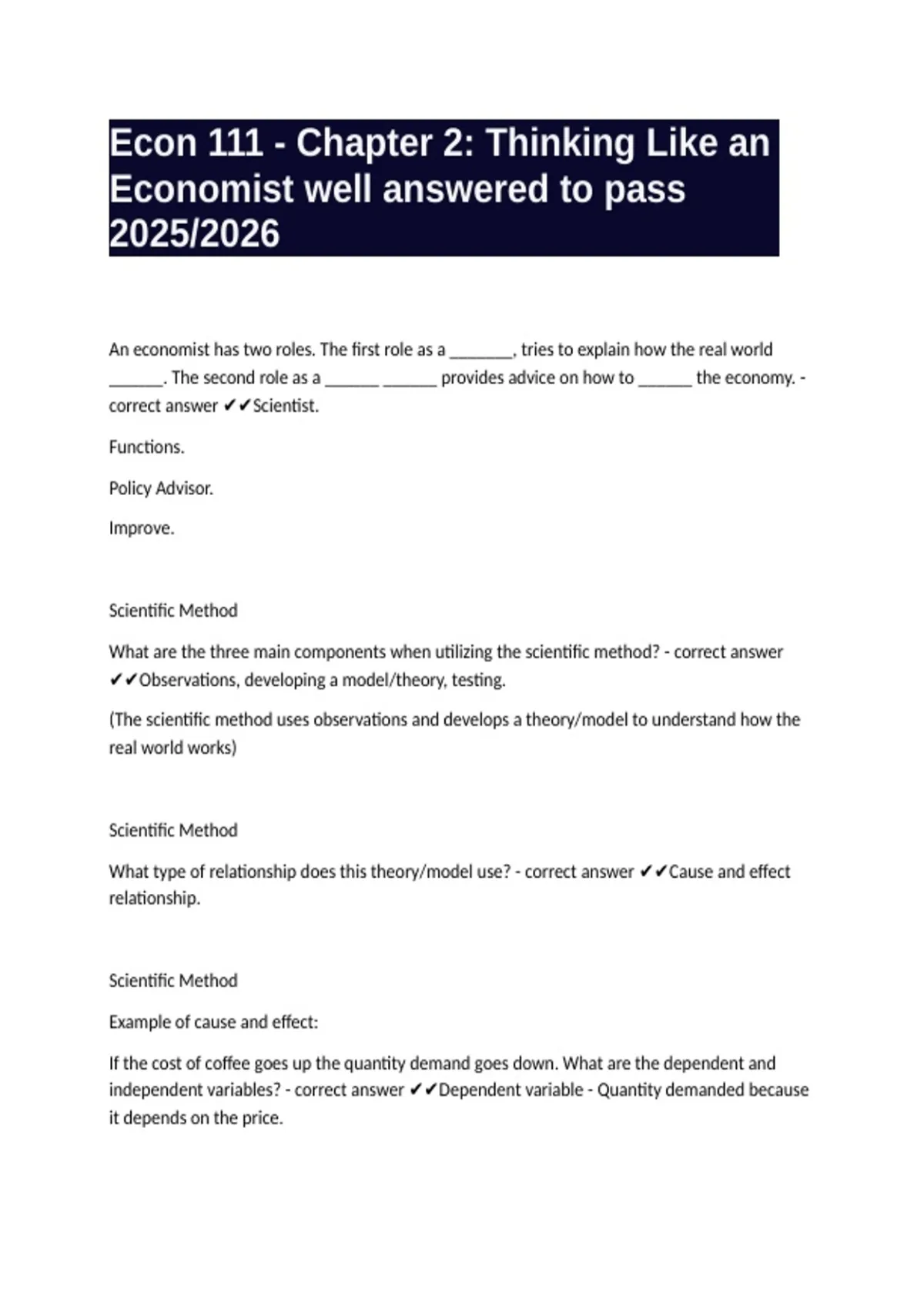 Econ 111 - Chapter 2 Thinking Like an Economist well answered to pass 2025/2026