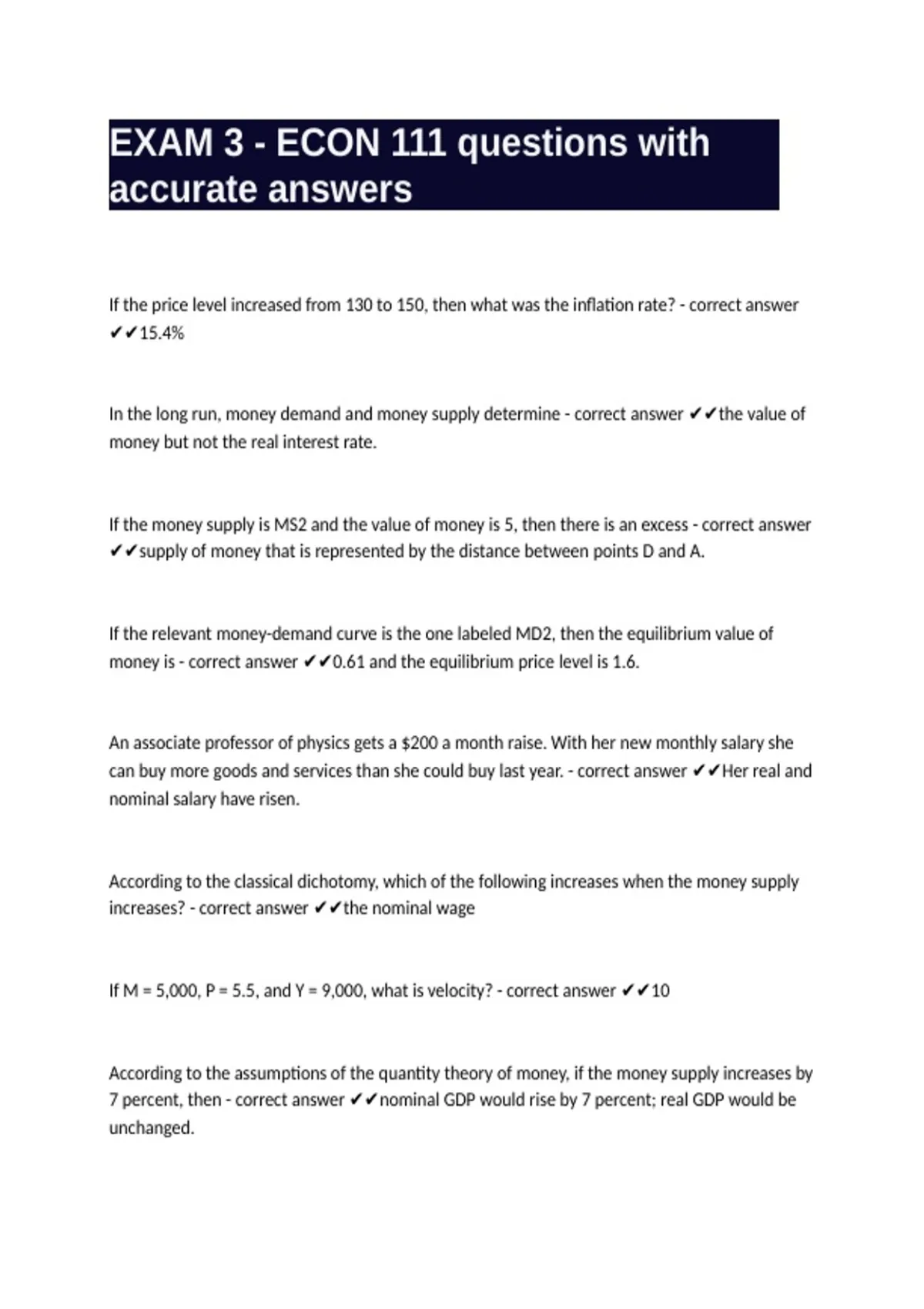 EXAM 3 - ECON 111 questions with accurate answers