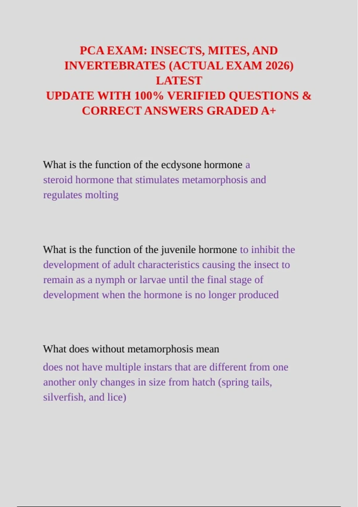 PCA EXAM: INSECTS, MITES, AND INVERTEBRATES (ACTUAL EXAM 2026) LATEST UPDATE WITH 100% VERIFIED QUESTIONS & CORRECT ANSWERS GRADED A+