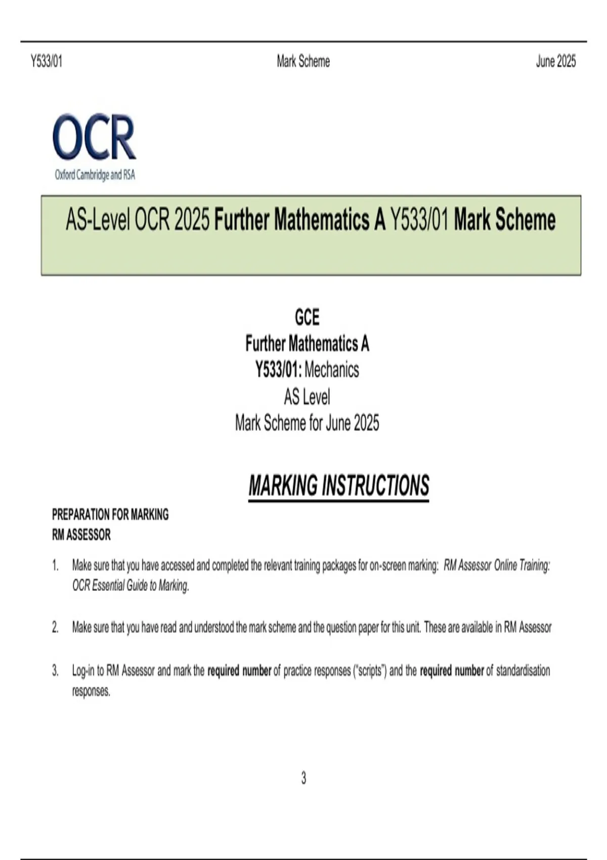 , Y533/01 Mark Scheme June 2025
