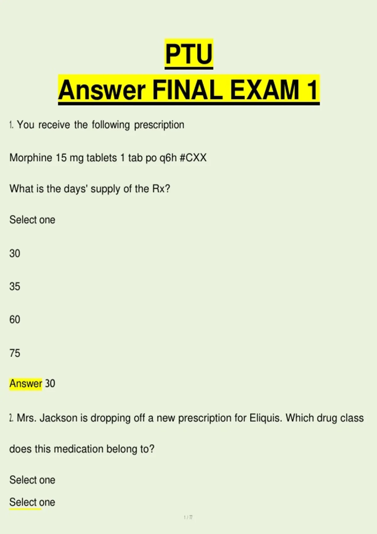PTU Final Exam 1 – Comprehensive Study Guide, Practice Questions & Verified Answers | PTU Exam 1 Review, Key Concepts, Definitions & Exam-Focused Notes (Latest Version)