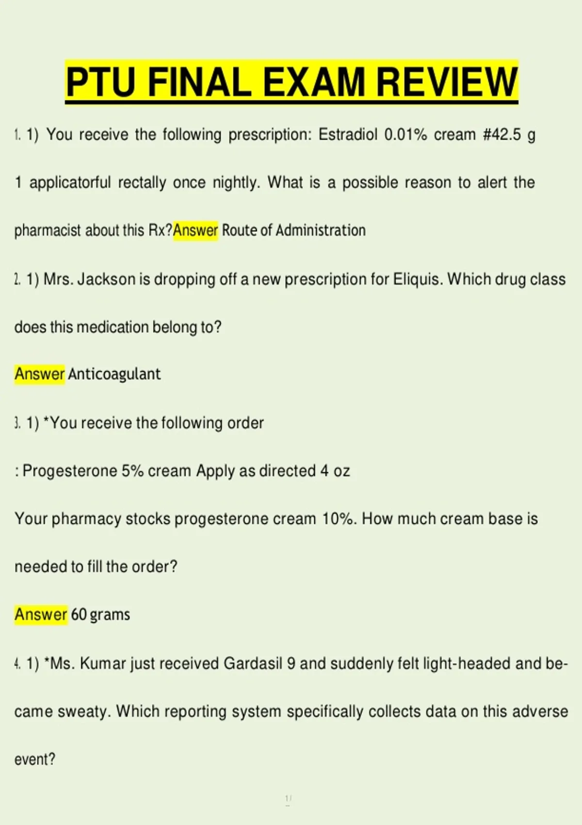 1. 1) You receive the following prescription: Estradiol 0.01% cream #42.5 g