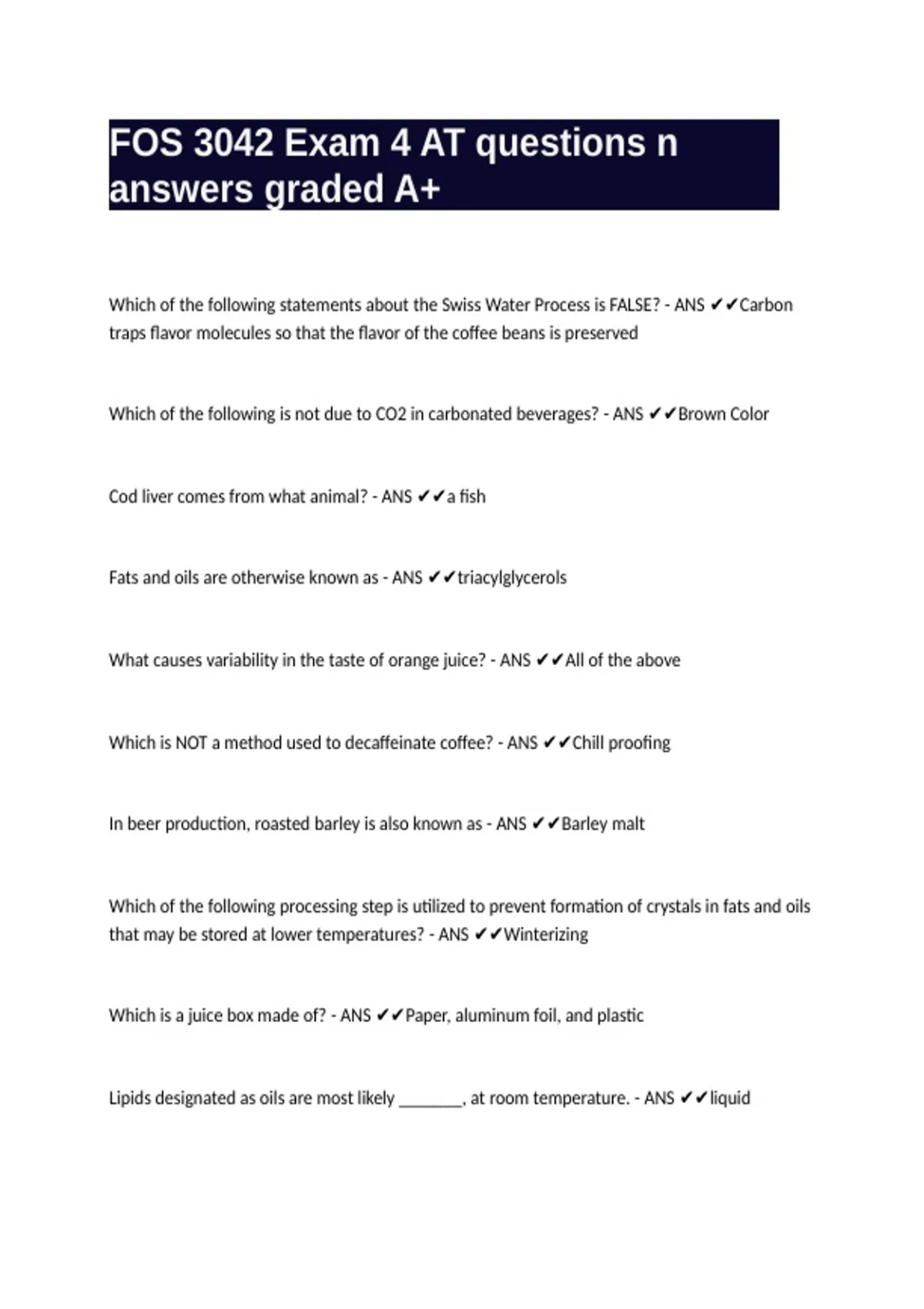 FOS 3042 Exam 4 AT questions n answers graded A+