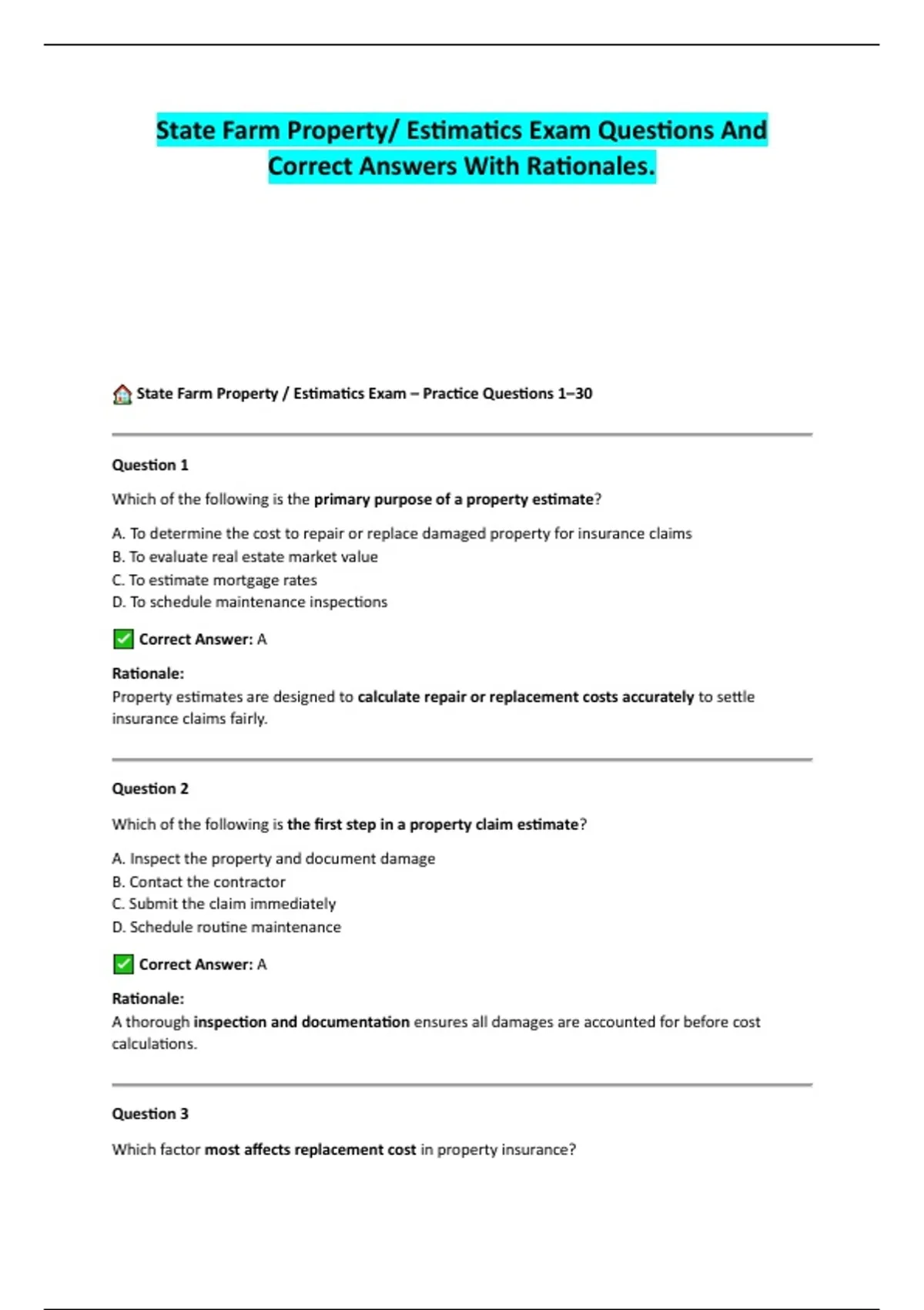 State Farm Property / Estimatics Exam – Practice Questions 1–30