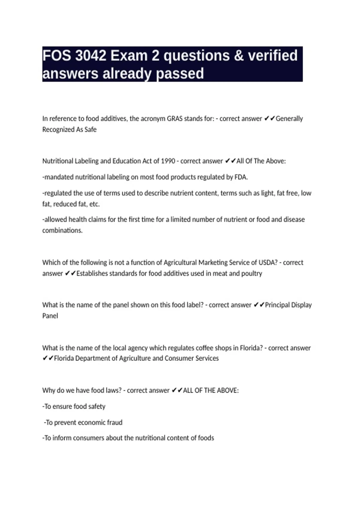 FOS 3042 Exam 2 questions & verified answers already passed
