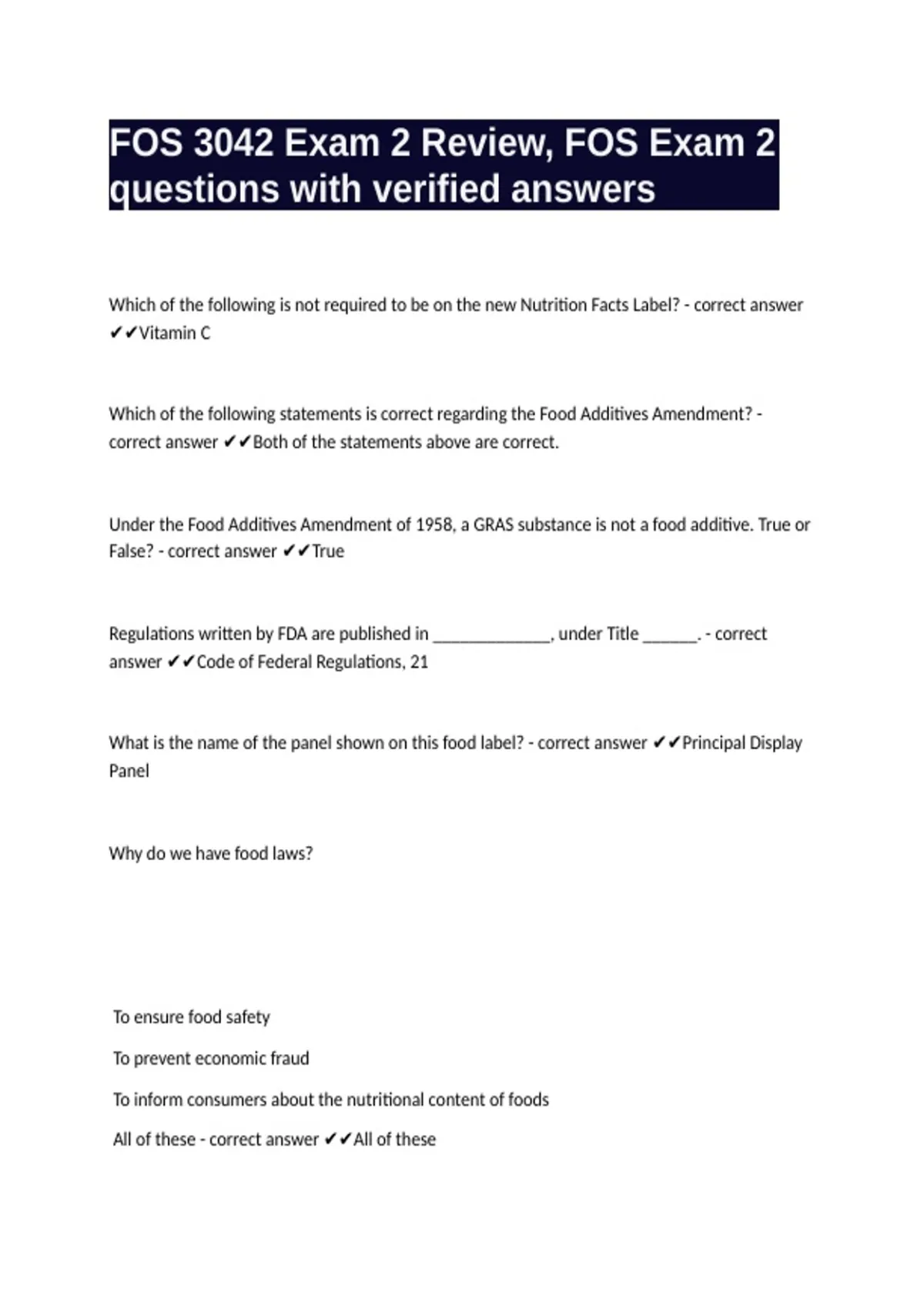 FOS 3042 Exam 2 Review, FOS Exam 2 questions with verified answers