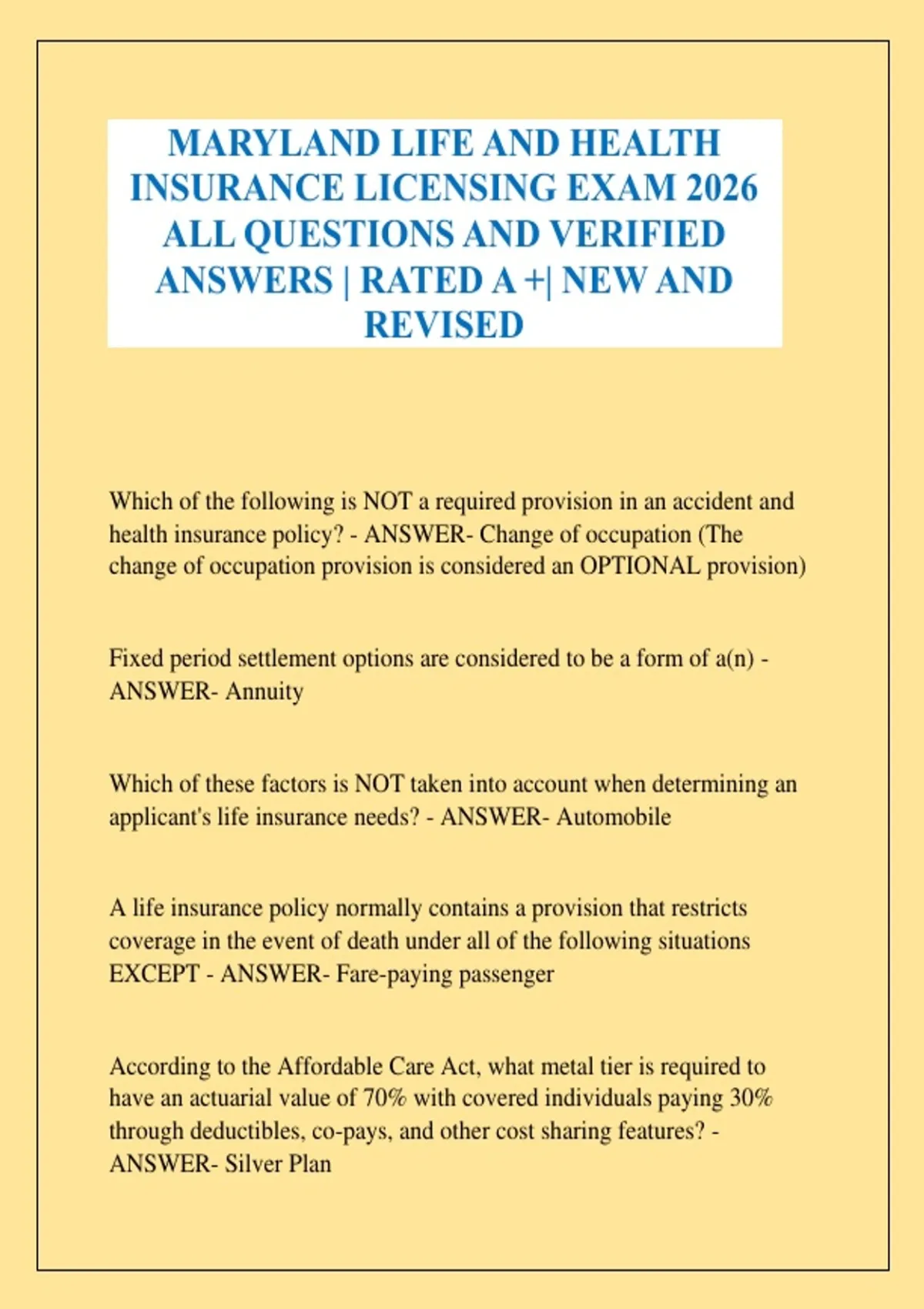 ANSWER- Silver Plan