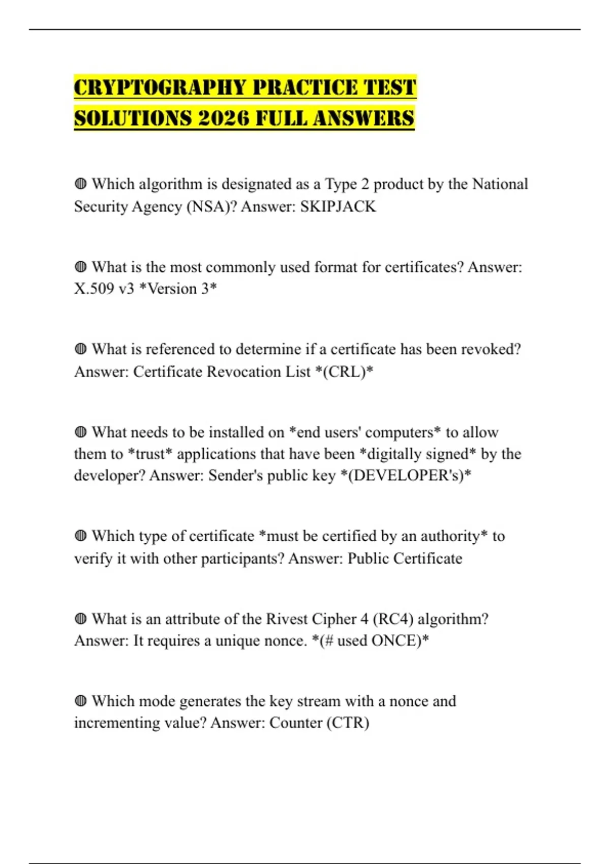 CRYPTOGRAPHY PRACTICE TEST SOLUTIONS 2026 FULL ANSWERS