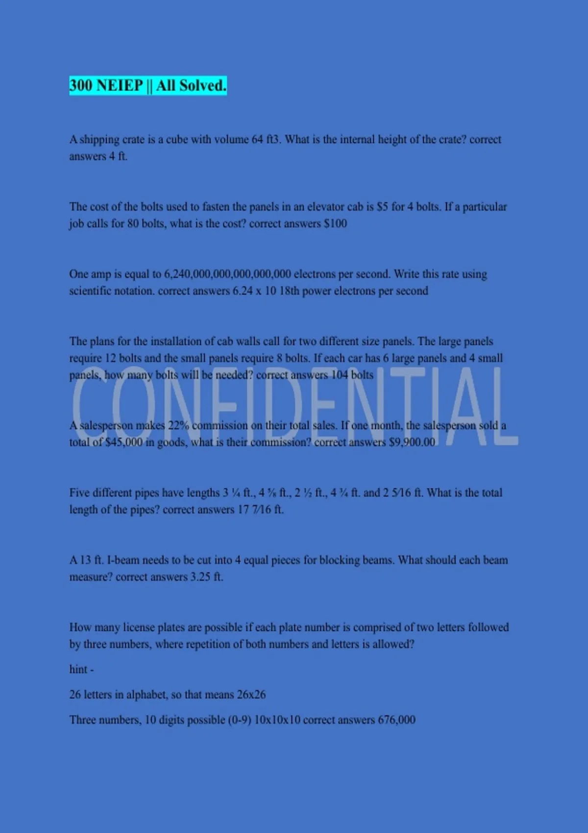Ace your NEIEP 300 assessment with this all-in-one study guide! This comprehensive resource contains every question and verified answer you need to prepare for the National Elevator Industry Education Program (NEIEP) 300-level exam. Ideal for elevator mechanics, apprentices, and industry students, this guide covers essential topics in math, electrical theory, circuits, safety, magnetism, and more—all aligned with the latest NEIEP standards.