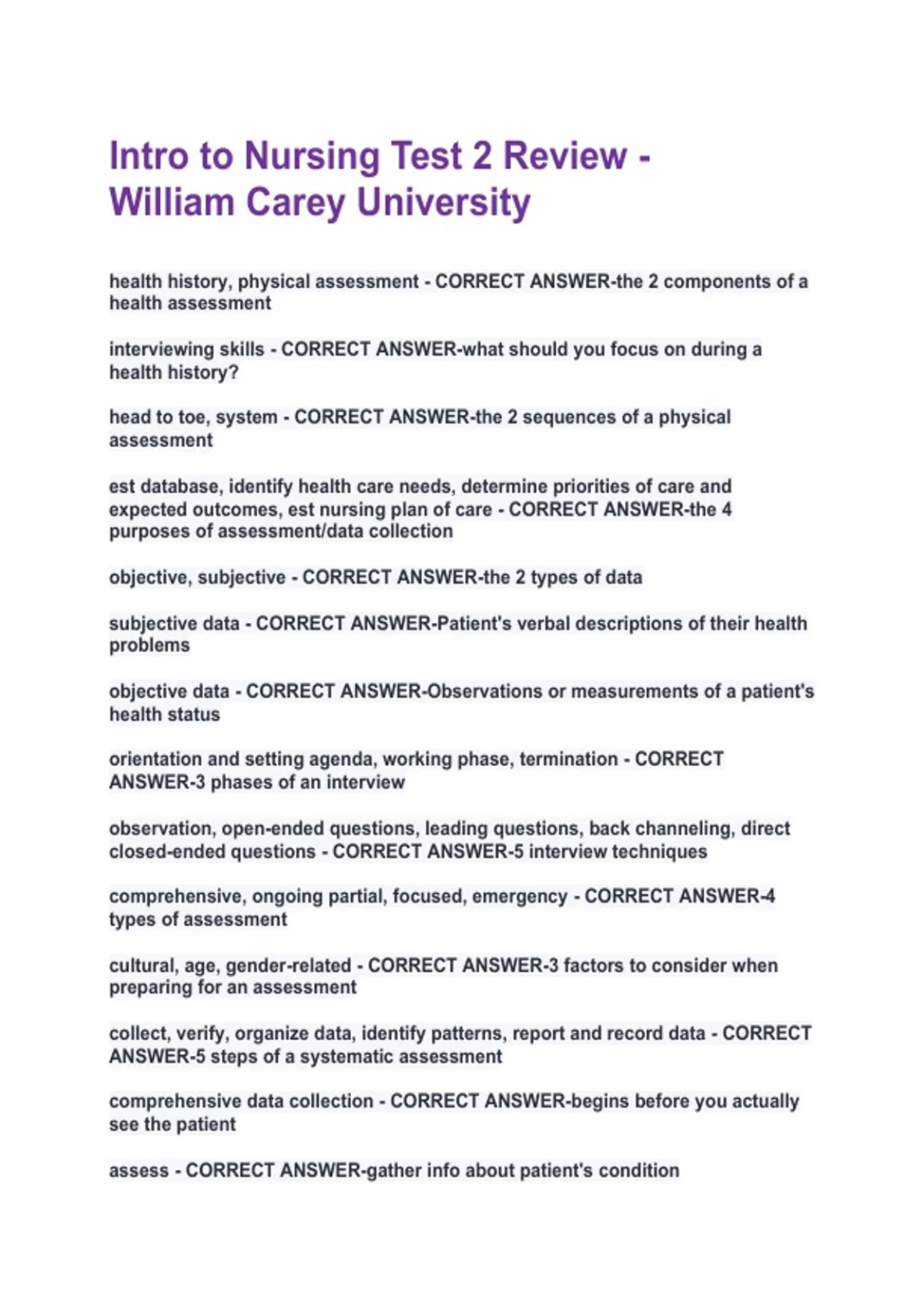 subjective data - CORRECT ANSWER-Patient's verbal descriptions of their health
