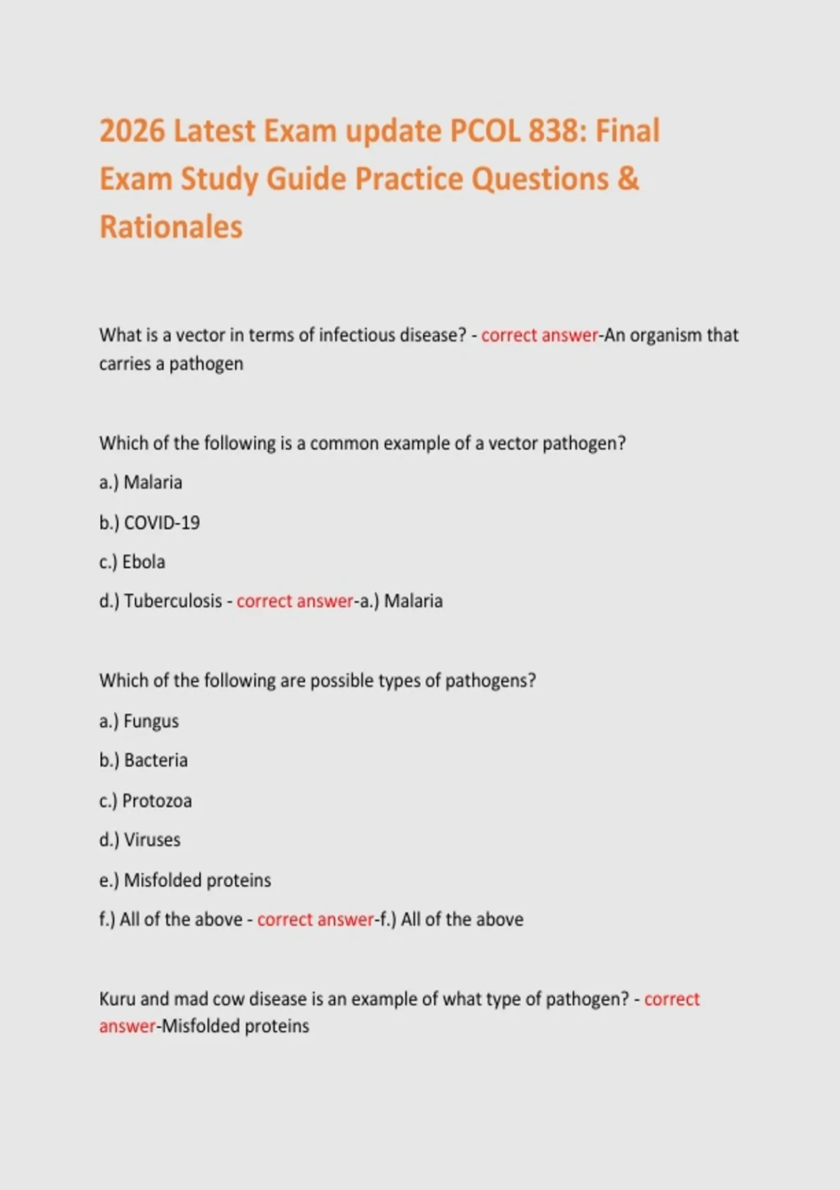 2026 Latest Exam update PCOL 838: Final Exam Study Guide Practice Questions & Rationales
