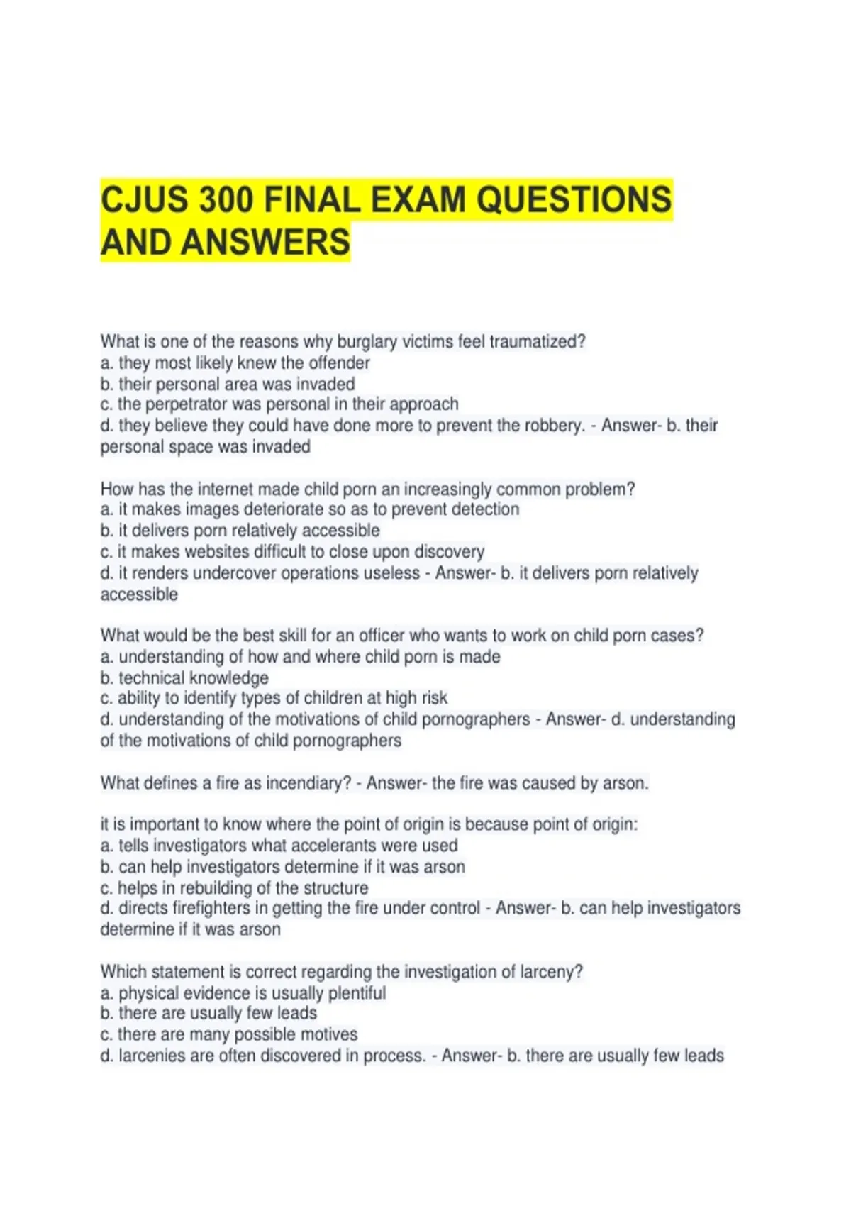 CJUS 300 FINAL EXAM QUESTIONS AND ANSWERS