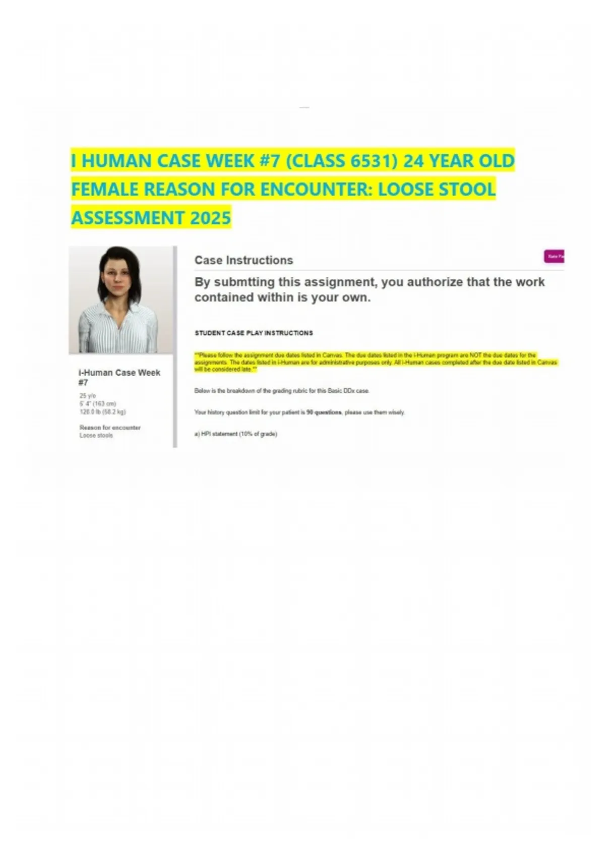 25-Year-Old Female with Loose Stool iHuman Week 7 Case Study